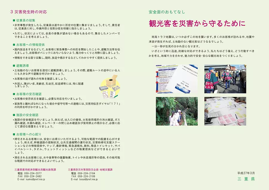 観光客の防災対策啓発リーフレット「観光客を災害から守るために」(三重県観光局) 2015.03.31