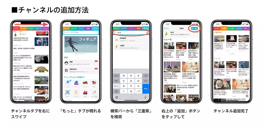 「三重県」タブをアプリ上に表示するには、各ユーザーで設定が必要です。登録方法は、プレスリリースの画像をご参照ください。