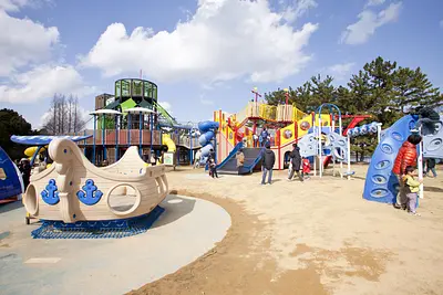 霞ヶ浦緑地に子供達が遊べる霞ゆめくじら公園がオープン。遊具が揃い楽しめる。