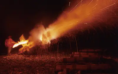 祭りのメインとなる「柱まつり」は、あらゆる災害を松明とともに夜空に放つことで筏流しの筏師たちの安全祈願や無病息災、大漁を願って遠い昔から熊野川水系で行われてきました。