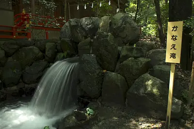 "開運みちびきの神様として知られる猿田彦大神を祀り、全国から参拝者が訪れる。 木々に囲まれた厳かな境内には松下電器の創業者・松下幸之助翁寄進の茶室「鈴松庵」があり、流派を問わず広く一般にも開放している。 "