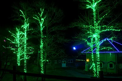 一年中、春のような景色を光で楽しんでいただくことができます。 約20万個のLEDや電球、150基の照明ライトで、リゾートの自然、建物を夜空に浮かび上がらせます。