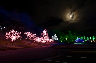 一年中、春のような景色を光で楽しんでいただくことができます。 約20万個のLEDや電球、150基の照明ライトで、リゾートの自然、建物を夜空に浮かび上がらせます。