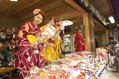 蛭子神社の祭礼。「えべっさん」の愛称で親しまれています。 七福神が町内を練り歩くほか、山の幸と海の幸の物々交換の名残といわれるハマグリ市が多くの露店と共にならびます。 神社では、ネコヤナギに大判小判などの縁起物をつけた「吉兆(けっきょ)」が授与されます。