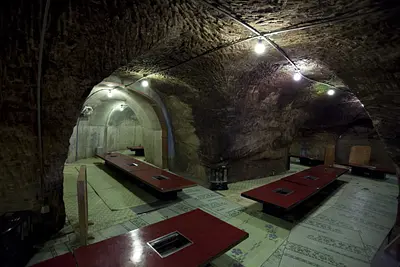洞窟で山海賊料理が堪能できる「地底の楽園」。里山と田園に囲まれた静かな宿。洞窟座敷、洞窟風呂は不思議な空間。