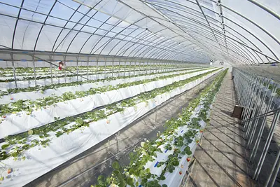 暖かいハウスの中で、章姫・栃乙女の2品種を栽培しています。