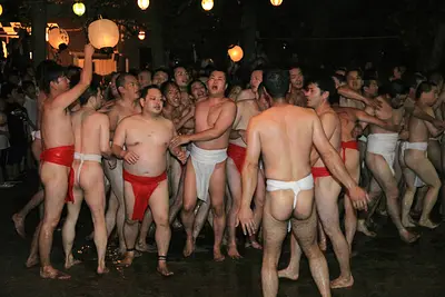 一色、八雲神社の夏の恒例の祭礼。一色地区のほか地区外の青年70~80名が裸で「ざる」をうばいあう約400年の歴史がある伝統的神事。