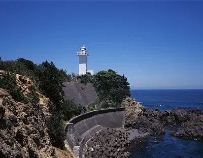 的矢湾入口の岬で、江戸時代に幕府直営の灯明台があった。岬の先は断崖と荒磯で、海女の漁場。