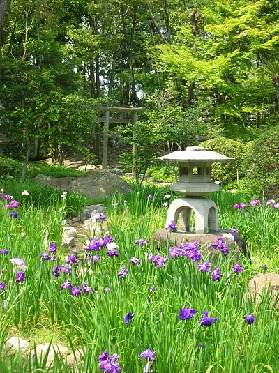 諸戸氏庭園(1)花菖蒲池石灯篭