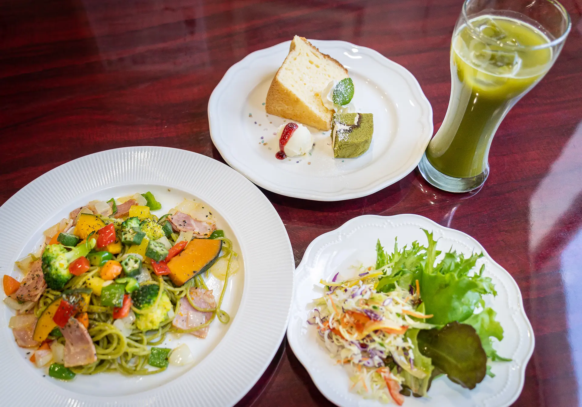 お得なセット「健康もりもりRakuenセット」を注文すると、サラダとデザートに加えて青汁まで一緒に堪能することができるのでおすすめです!