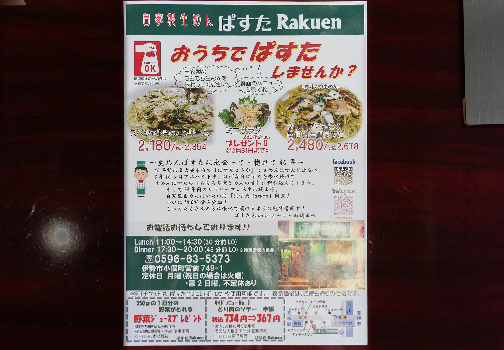 ぜひ、伊勢に訪れた際には感染症対策をしっかり施したぱすたRakuenで、店主自慢の生めんパスタを味わってみてください!