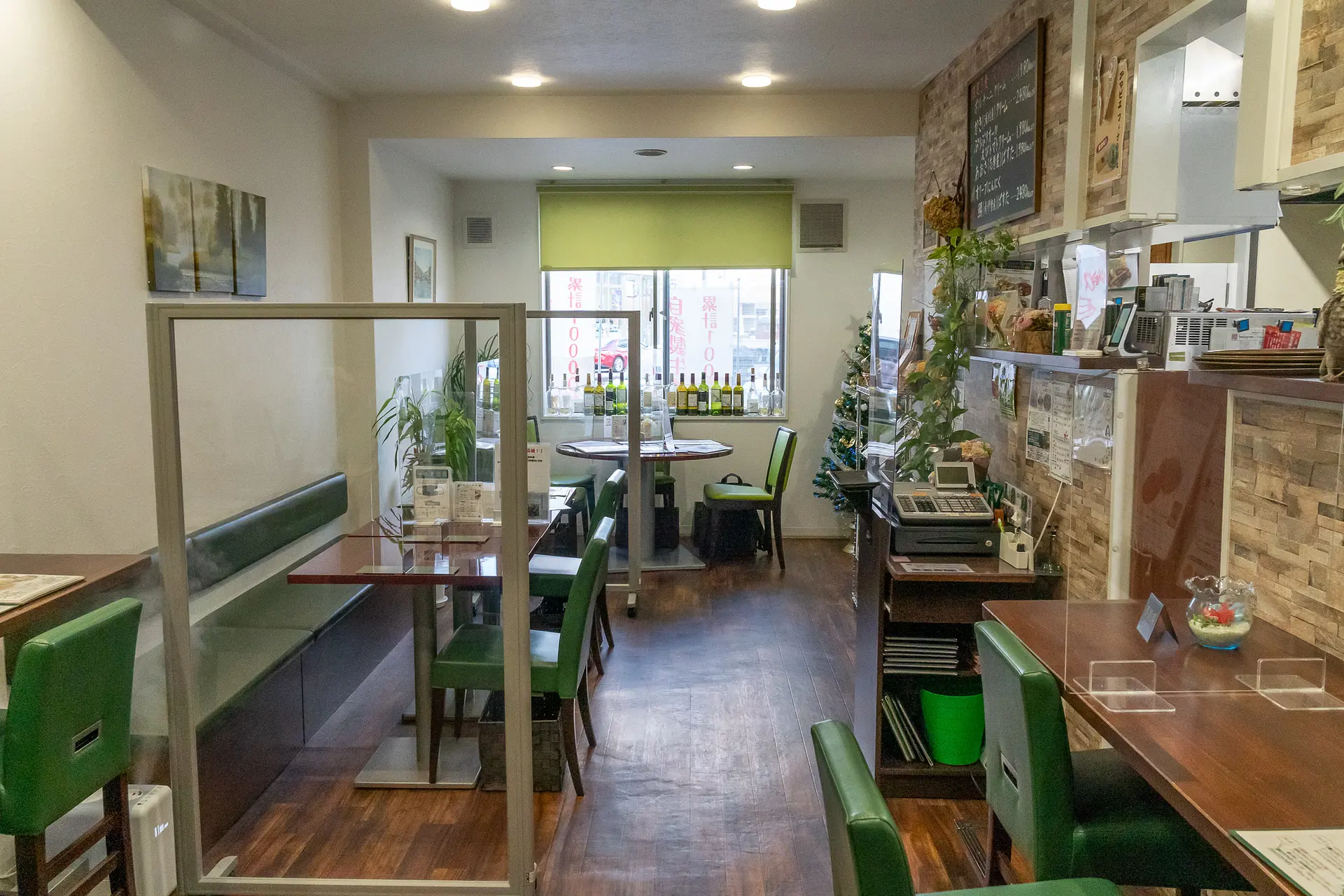 店内には、感染症拡大を機に導入された気調・熱交換型換気扇が設置されていて、外気温の影響を受けることなく室内の温度を保ちながらも十分な換気量を確保されていました。さらに、空気清浄機やCO2センサーも設置済みで、常に店内が新鮮で綺麗な空気で保たれています。