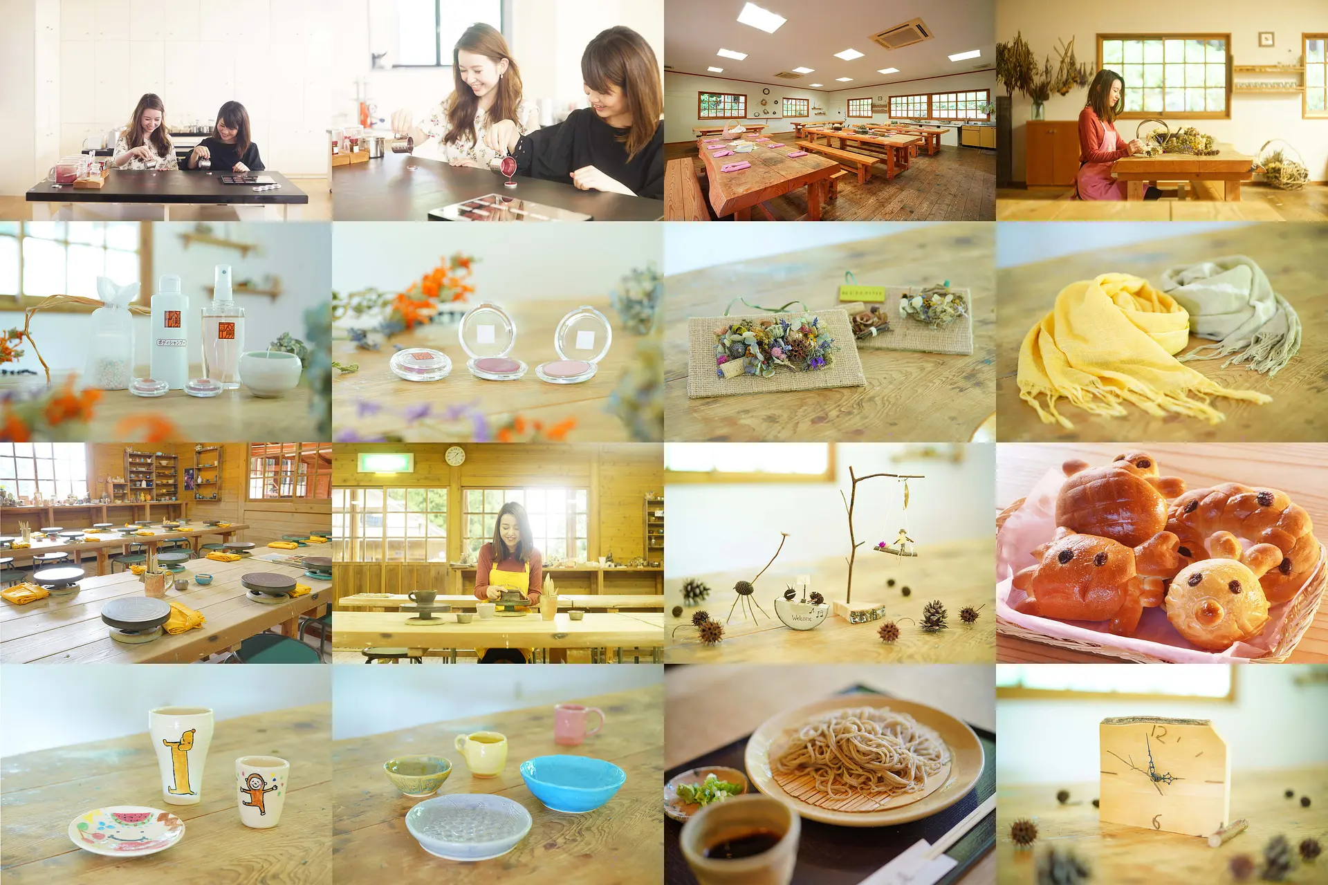 陶芸、ウッドクラフト、蕎麦打ち教室は、ファミリーやご夫婦に人気。女性に人気のあるプランとしては、ハーブクラフトやパン教室もあります。