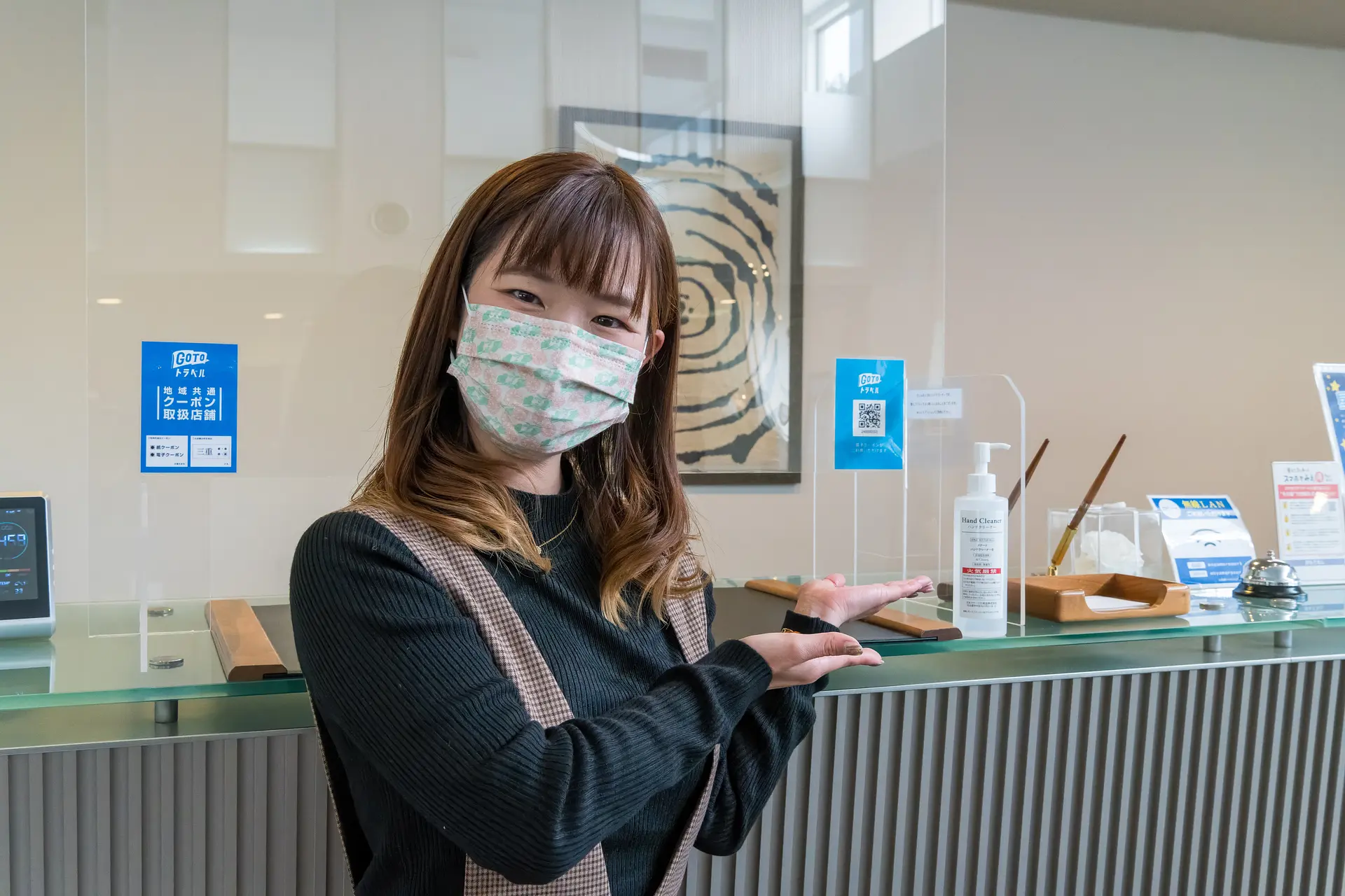 ホテルの入口には非接触体温計、消毒液を設置しています。施設内のお客様が触れる機会の多い所は適宜消毒を実施。客室内もキーやリモコンをはじめバスルーム内までしっかりとアルコール消毒を行います。