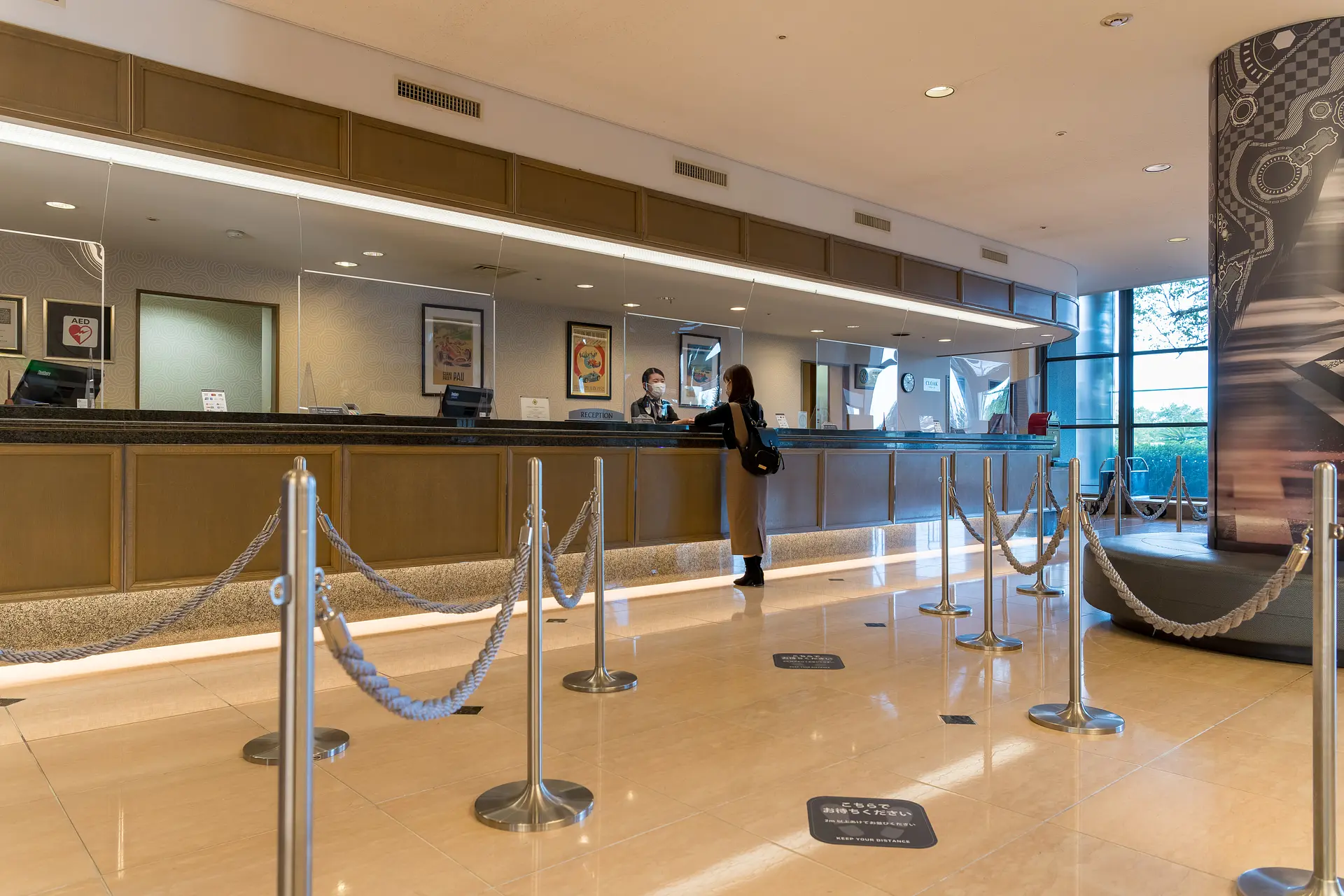 中に入るとロビーは広々としていて、落ち着いたデザインの中にも所々に鈴鹿サーキットらしいテイストがあるので、ファンにはたまらない造りです。