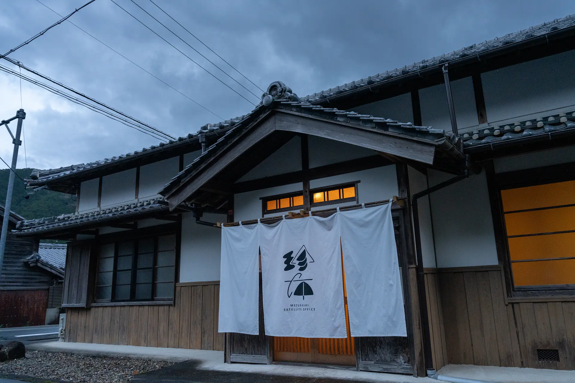 今回地域おこし協力隊の皆さんにインタビューを行ったサテライトオフィスは、珍布峠のすぐそば。のれんにも「珍布」の文字がデザインされていますね。サテライトオフィス内には、レンタルオフィスが3室、会議などに使用できるコワーキングスペースや、キッチンスペースがあります。エアコン完備でWi-Fiや光ファイバー回線も整っており、テレワークやリモートワークにも最適ですね!