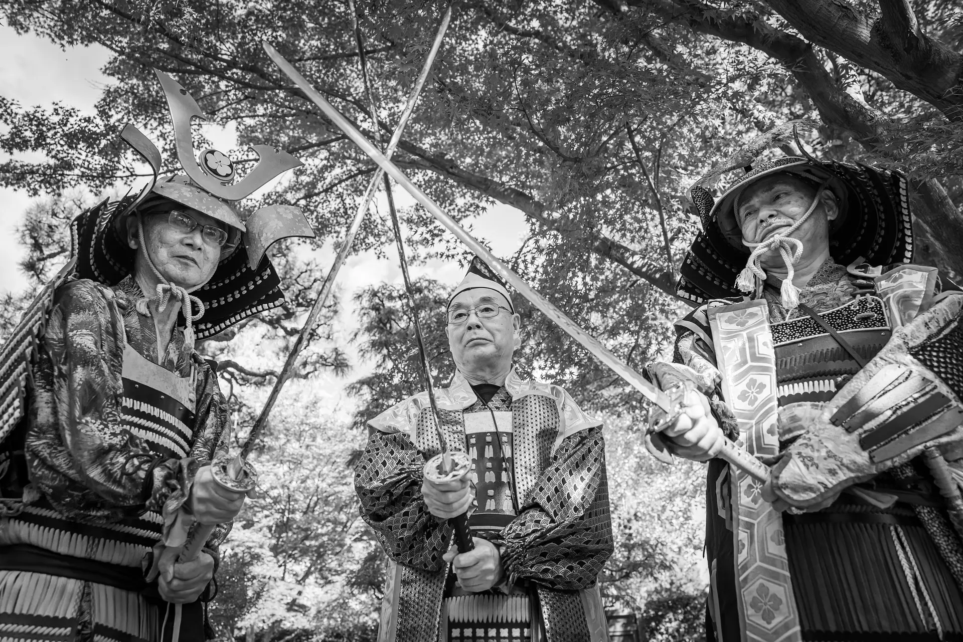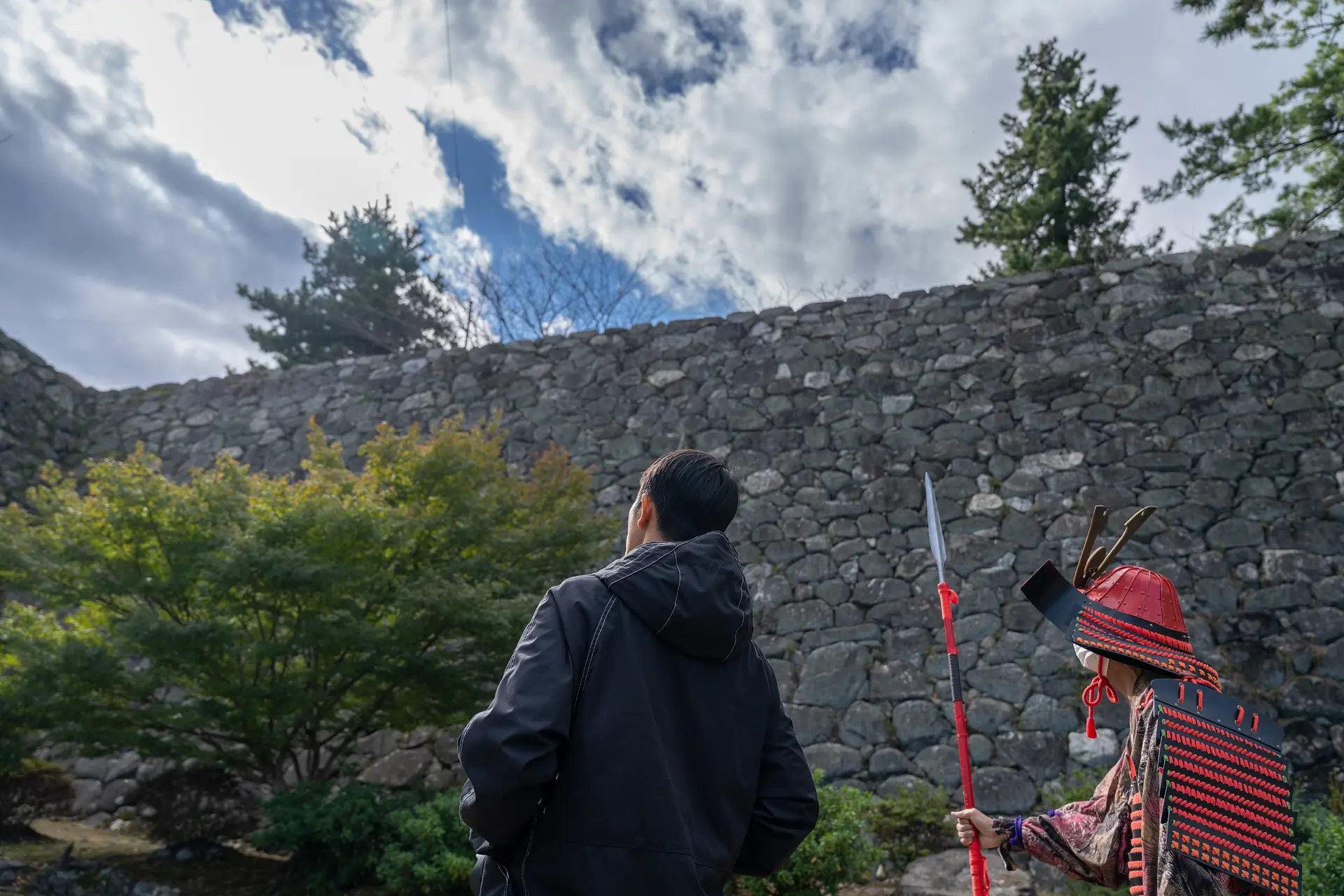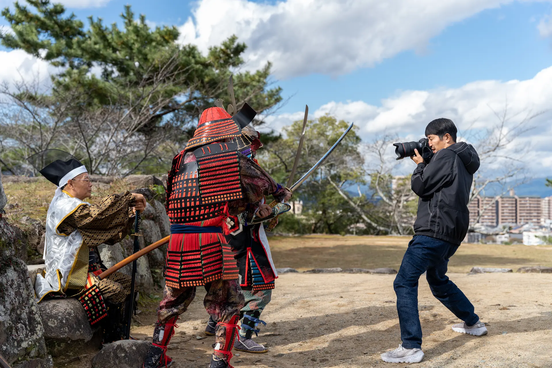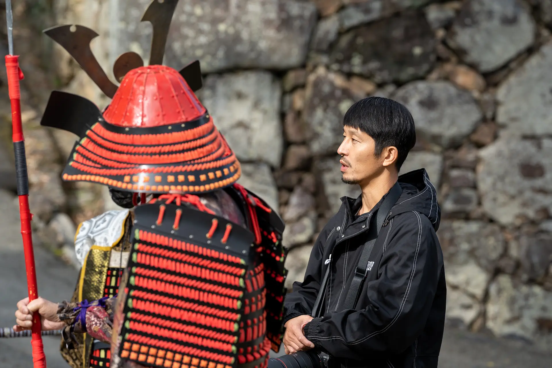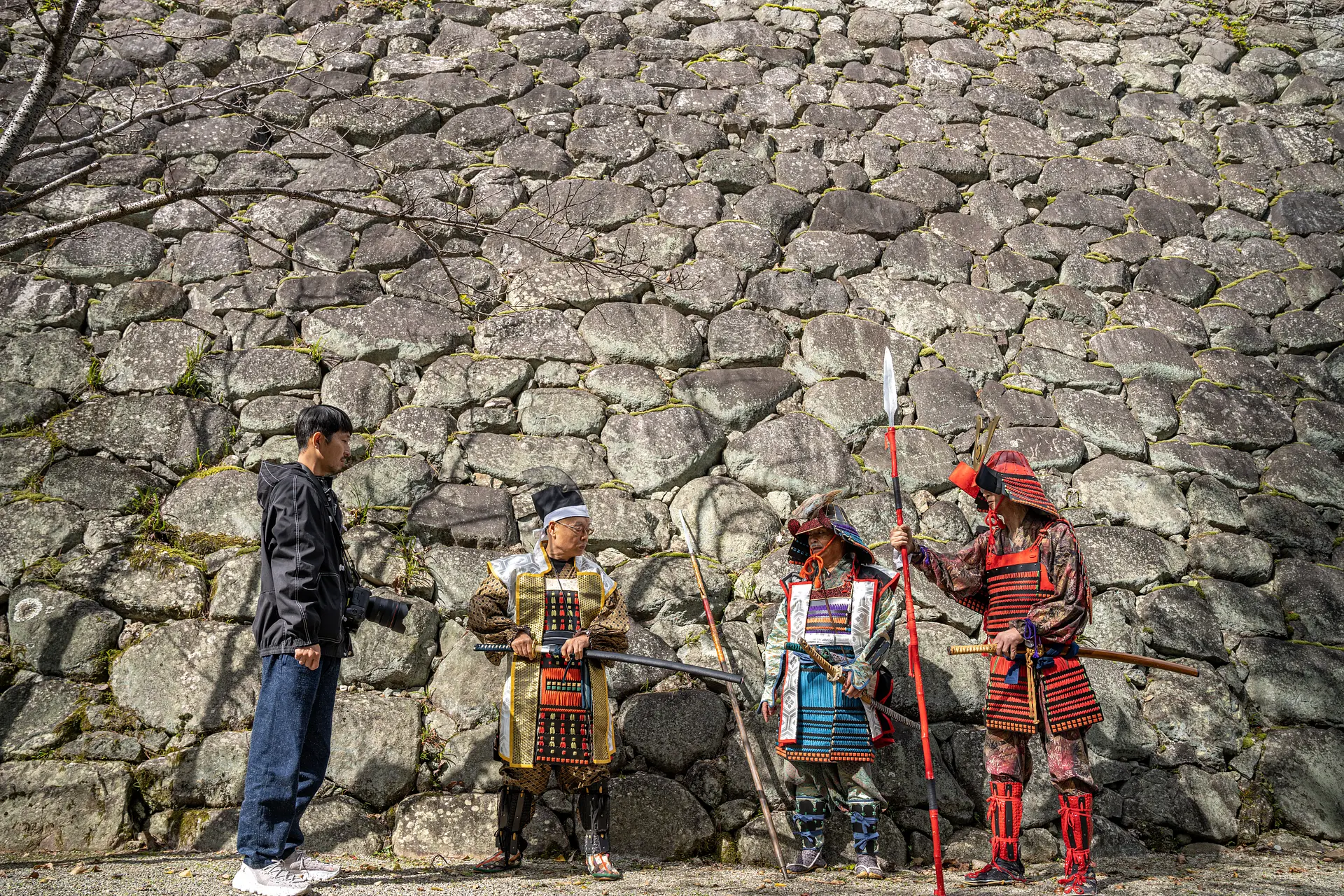 松坂城跡が大好き!松阪手作り甲冑愛好会「松坂氏郷隊」のみなさんに、三重県出身の写真家・浅田政志さんがインタビュー