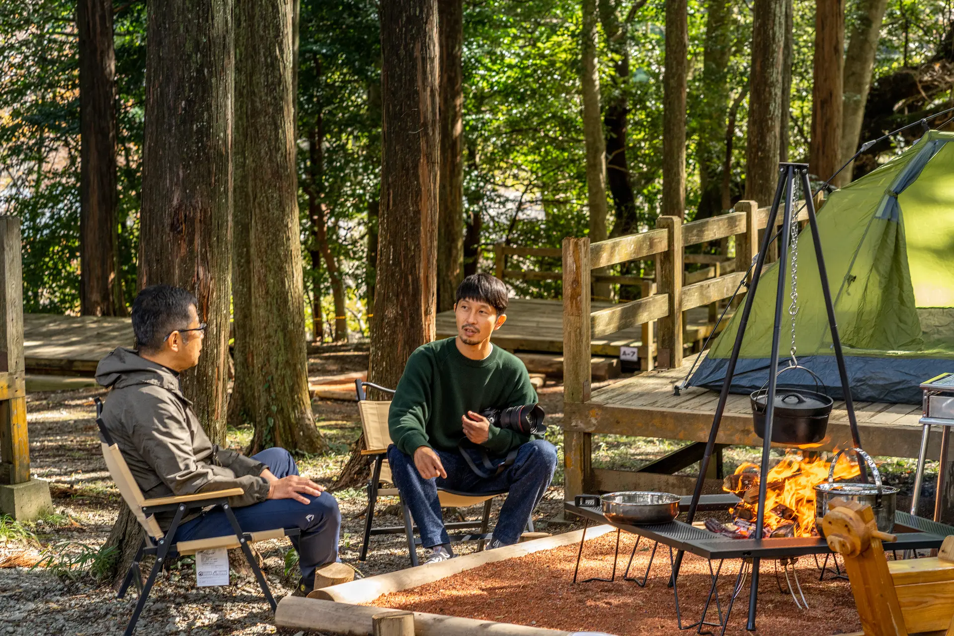 松阪の大自然をキャンプで堪能!松阪市森林公園が2021年4月にリニューアル。焚火もOKに!三重県出身の写真家・浅田政志さんが園長にインタビュー