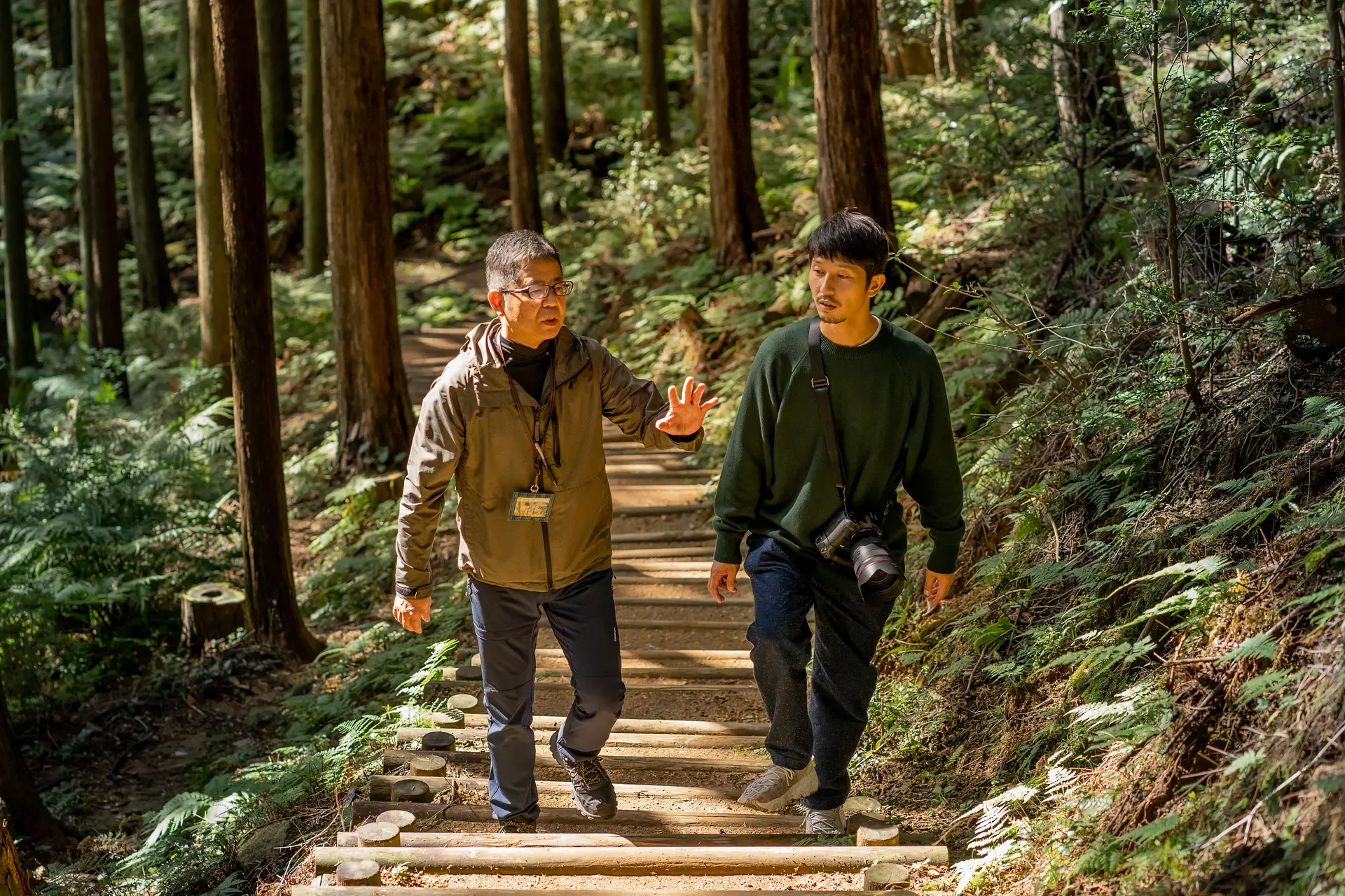 松阪市森林公園は観音岳山麓にある自然にかこまれた公園。2021年4月に指定管理者が株式会社松阪協働ファームに代わり、施設内も続々リニューアル!今回は三重県出身の写真家・浅田政志さんが、松阪市森林公園の岩森園長に、松阪市森林公園の新たな楽しみ方や、自然景観の魅力についてインタビューしました。