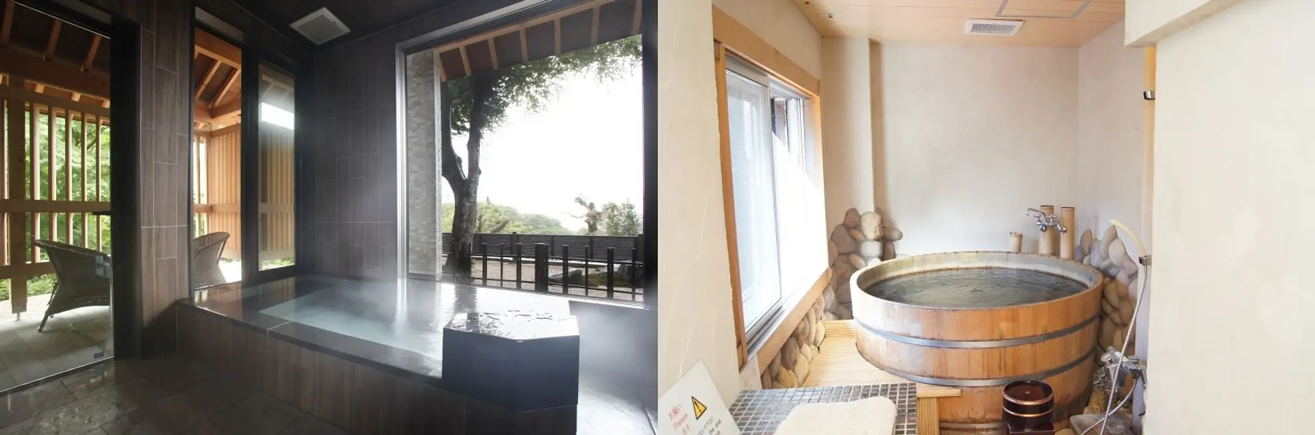 庭園には昭和初期の離れを改装した6タイプの貸し切り風呂も用意されていて、凛とした和空間の中、自分だけの特別な時間を楽しめます。