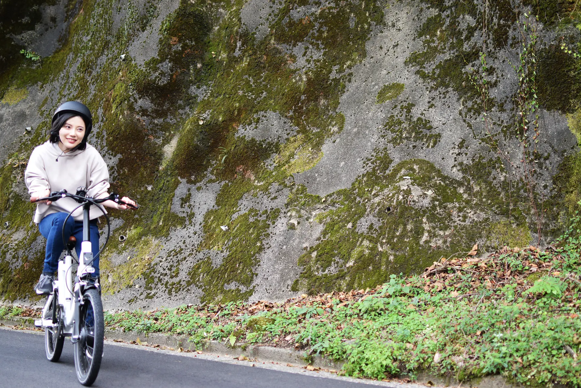 御在所ロープウエイをはじめ標高の高いスポットが多い菰野町。そんな中でも、電動自転車は少しの力で漕ぐだけでしっかりと進んでいくので、坂道でもスイスイと楽に登れます。