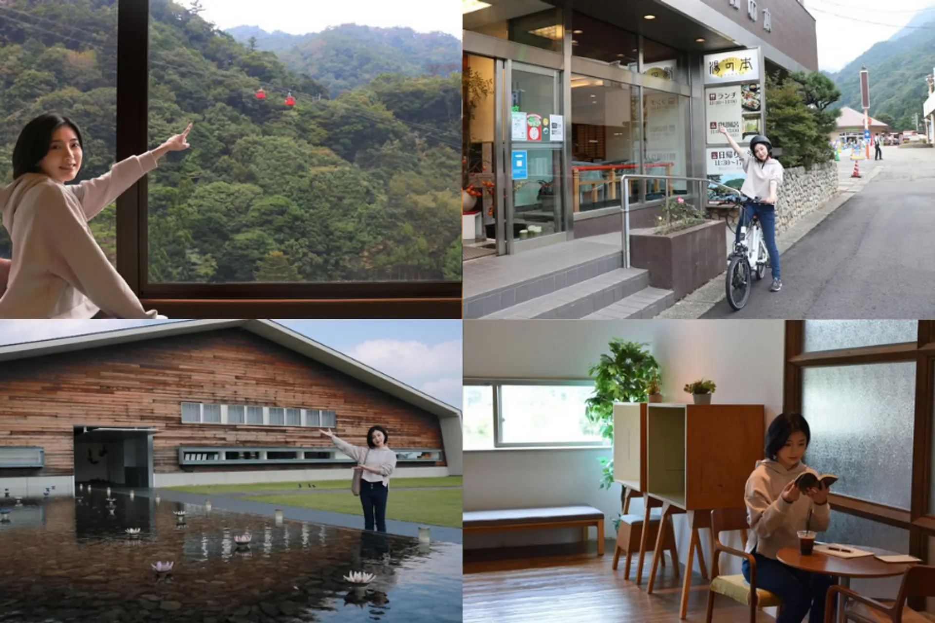 御在所ロープウエイから湯の山温泉、絶品の鹿肉バーガーまで、地域の自然や文化を楽しみながら、仕事も効率良く進められるコースをご紹介いたします。菰野町の豊かな自然を菰ビリティに乗って思う存分楽しみましょう!
