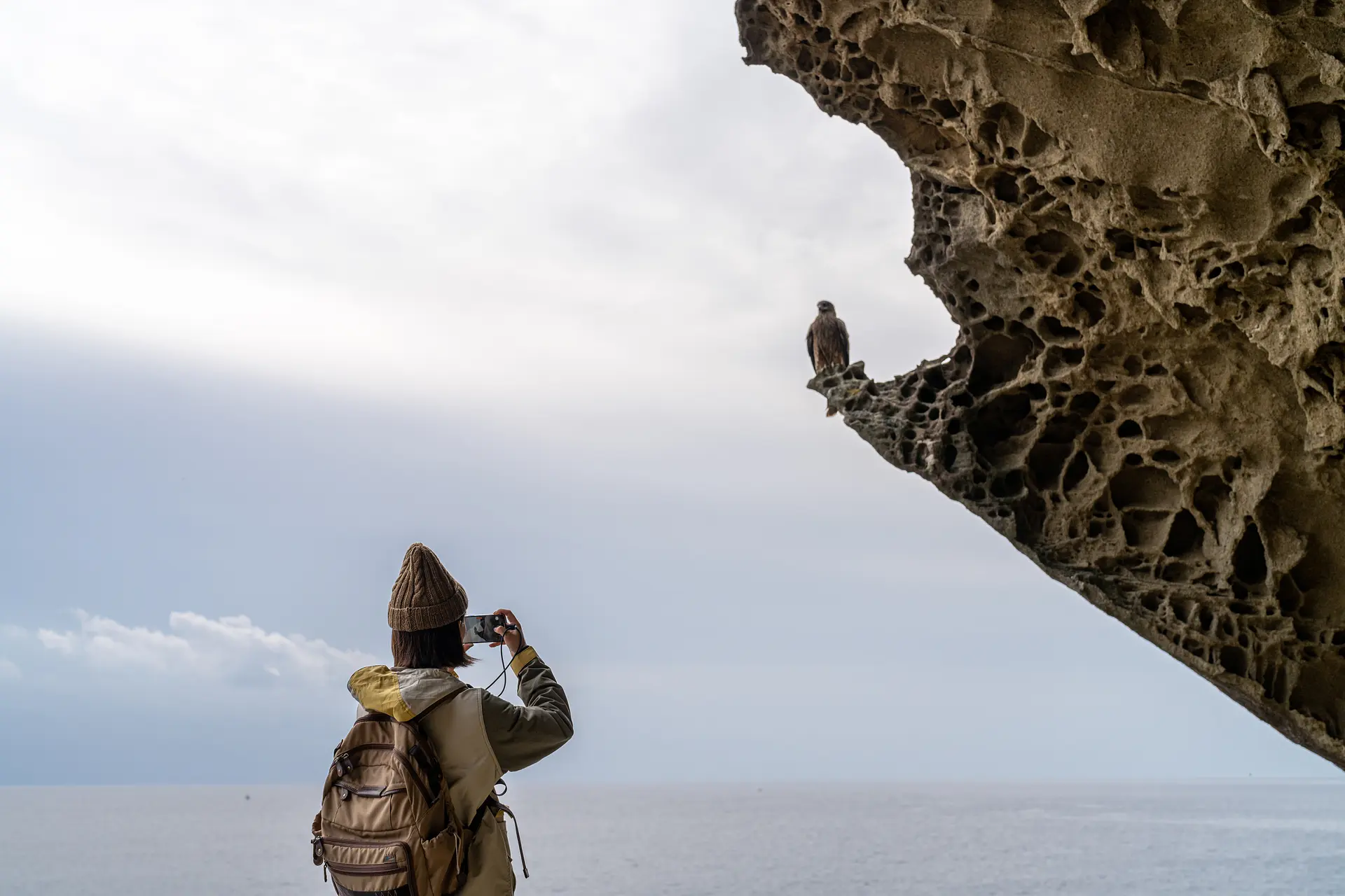 景色を眺めていると、鬼ヶ城の岸壁にトンビが!