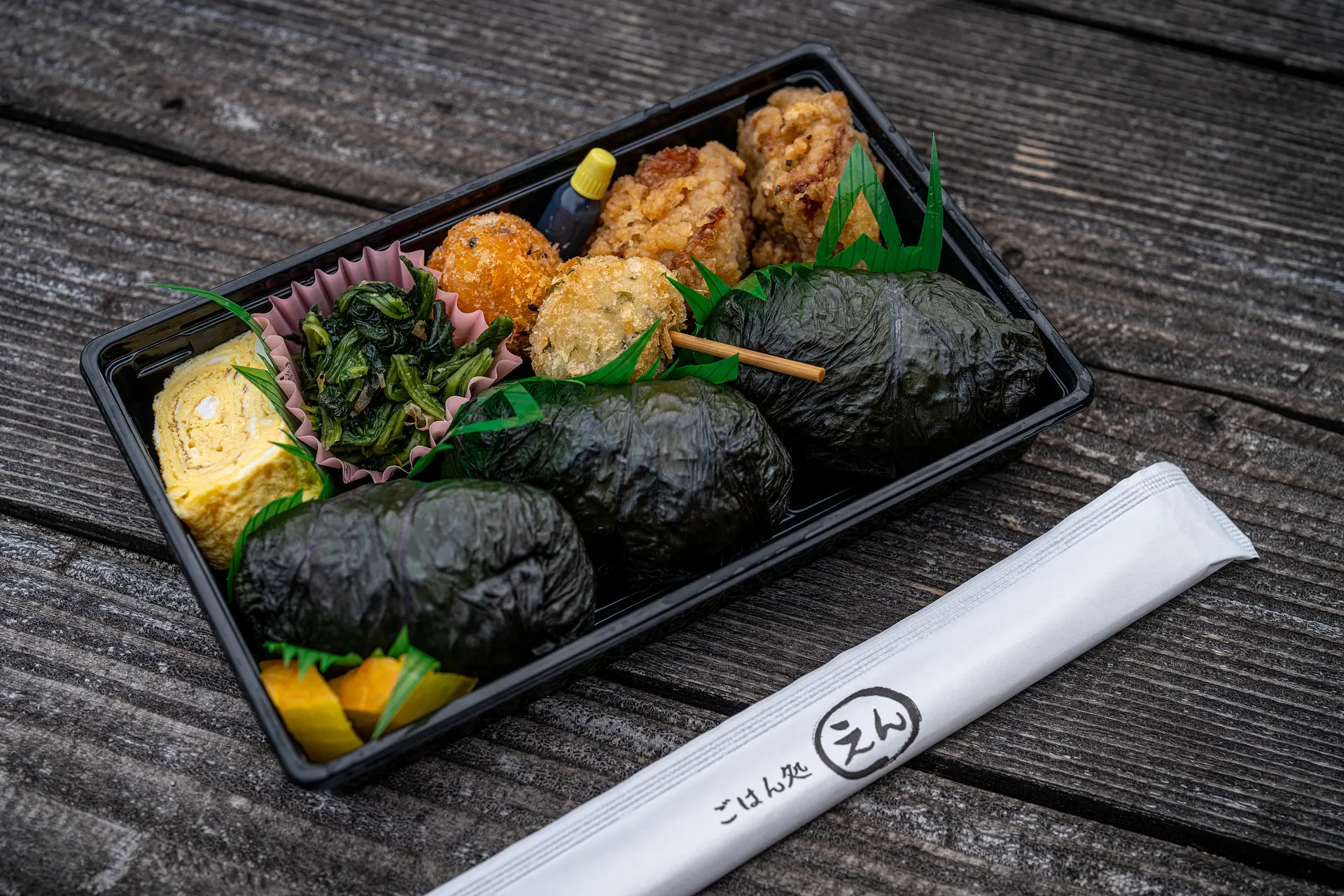 ここで、熊野市井戸町にある「ごはん処えん」の「めはり寿司」弁当(税込800円)もいただきます。めはり寿司は東紀州地域に伝わる、高菜の浅漬けでおにぎりをくるんだ伝統的な郷土料理。めはり寿司を始めて食べるという詩歩さん、お味やいかに…?!