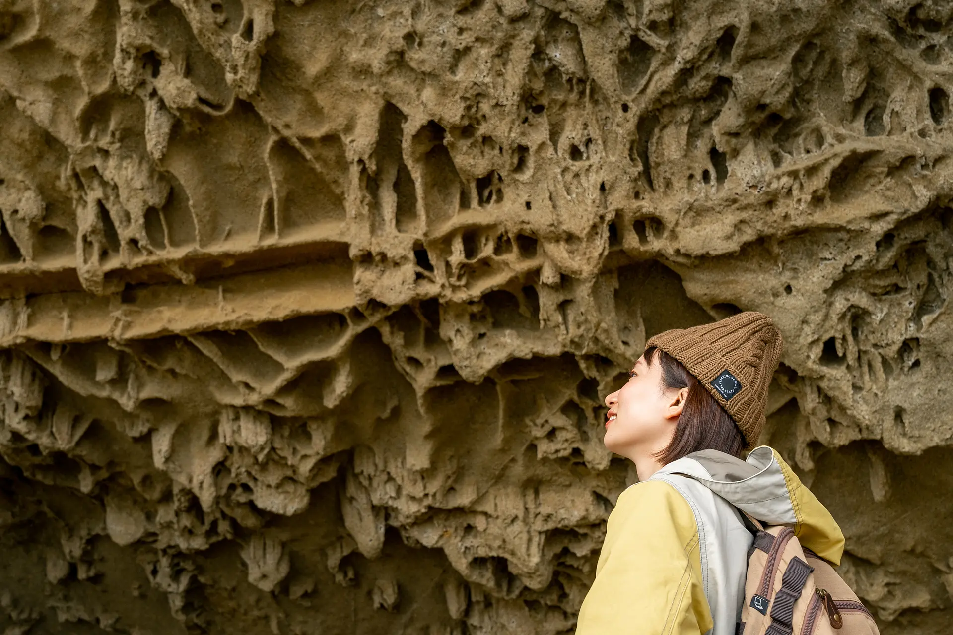 詩歩さん「洞窟の天井一帯に、自然にできたとは思えない複雑な形の穴が無数にあって、不思議な光景です」