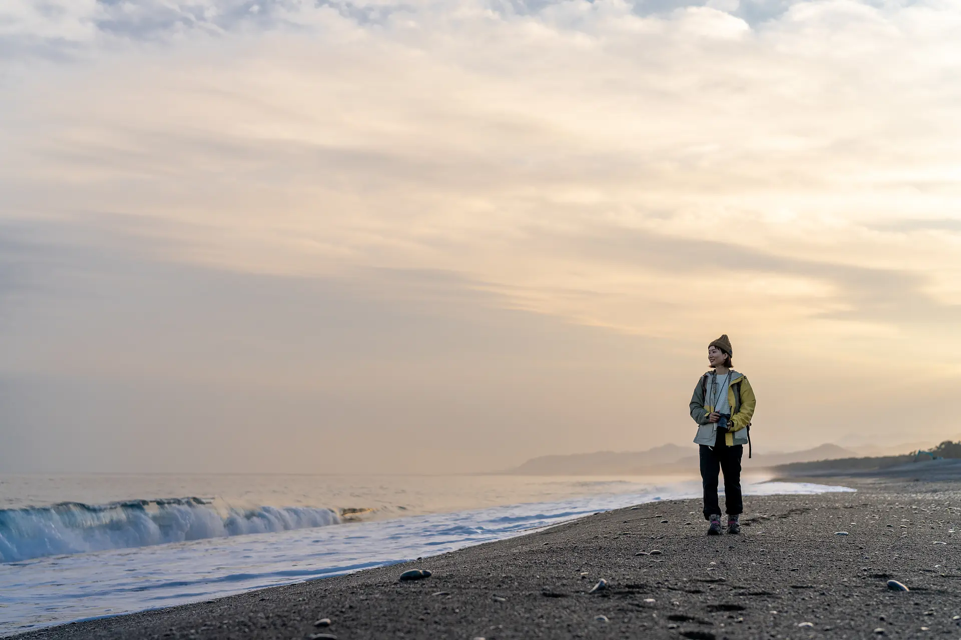 詩歩さん「夕焼け空と、長く続く海岸の景色が本当に綺麗。穏やかな気持ちになれます。」