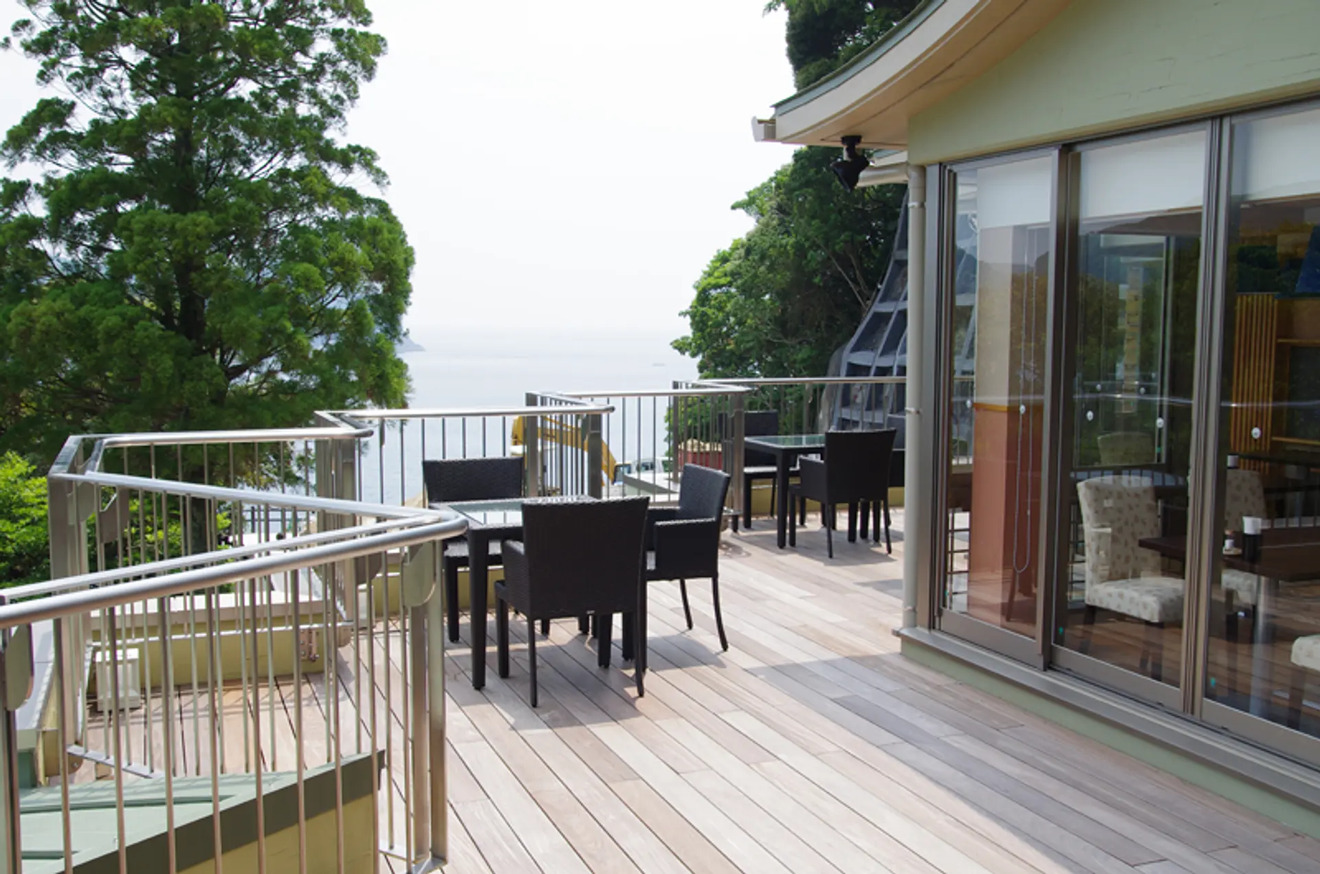 写真のようにデッキで海を眺めながら食事も可能です!個人的にはここでゆっくりご飯を食べたいな、と思いました。