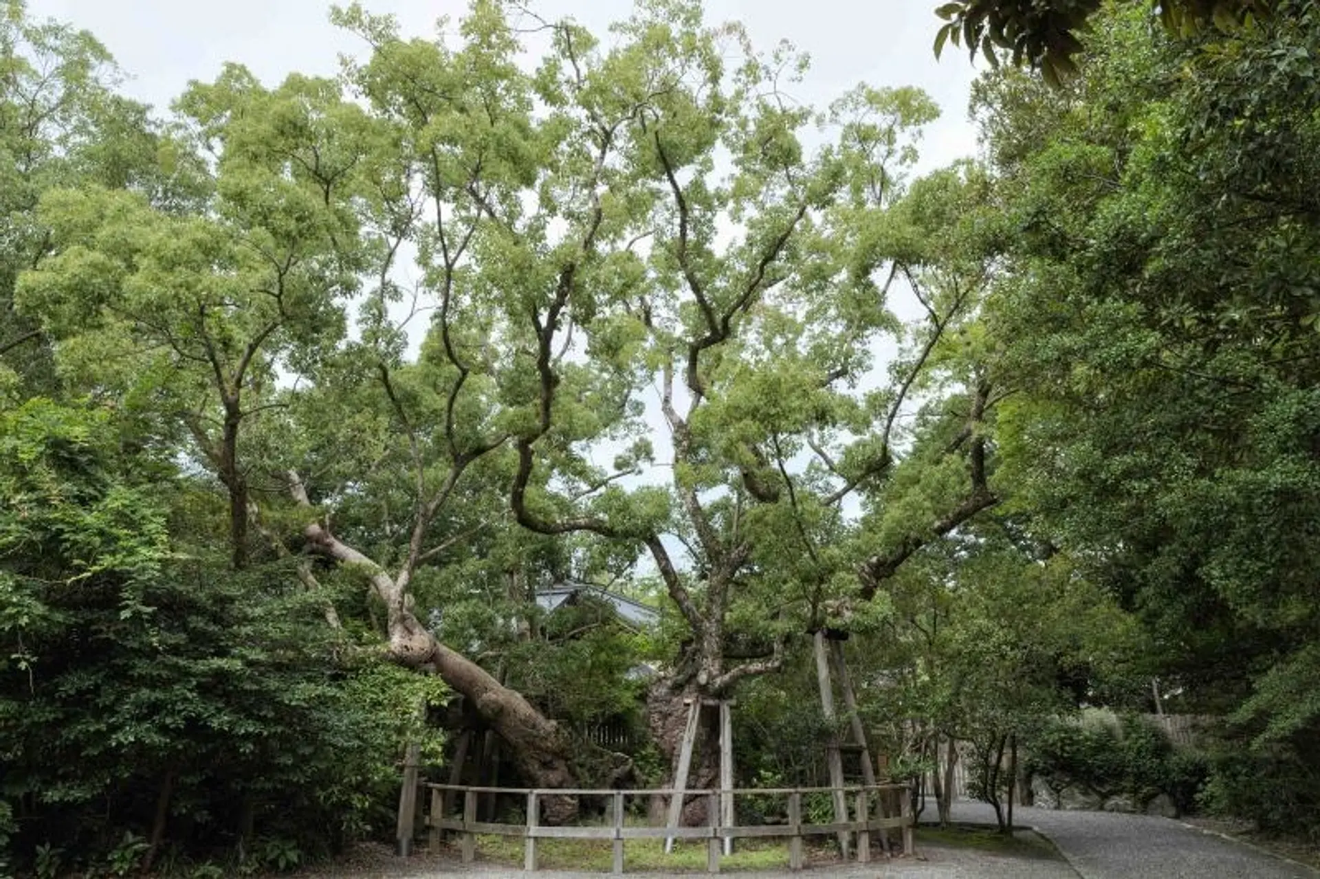 これは「清盛楠(きよもりぐす)」と呼ばれる楠木で、平清盛が勅使として参向した際に、冠にふれた枝を切らせたという伝承があるそうです。