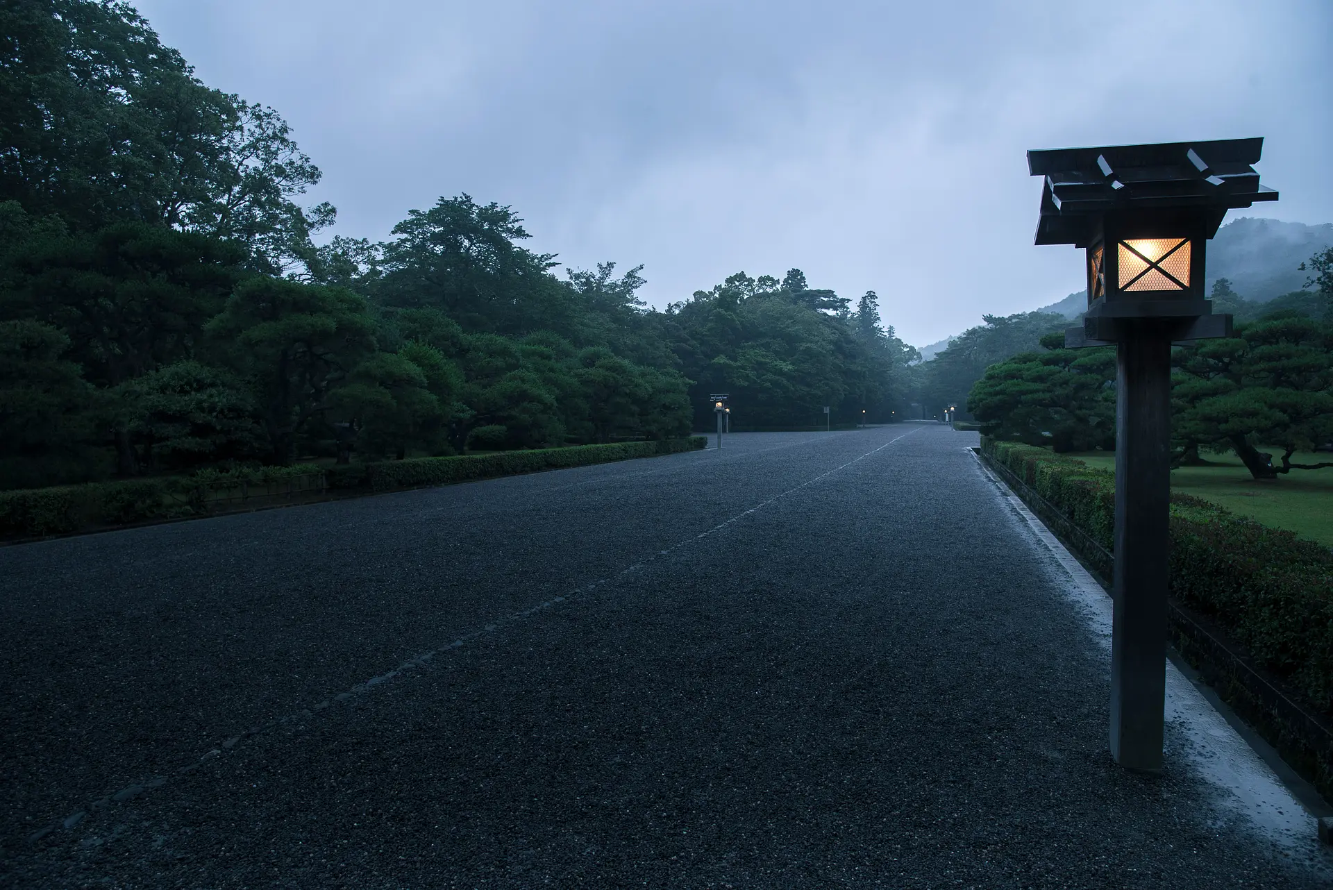 火除橋を渡ると、大きな木々に囲まれた参道に繋がり、外の世界とは違った静寂の雰囲気が漂います。