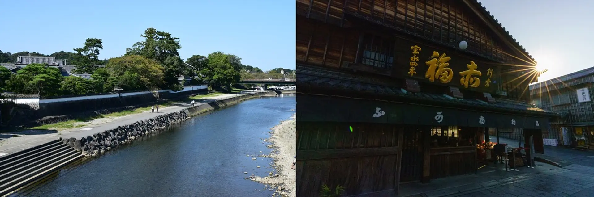 建物の外観はこの地域特有の切妻・妻入り様式で統一されており、風情を感じますね。
