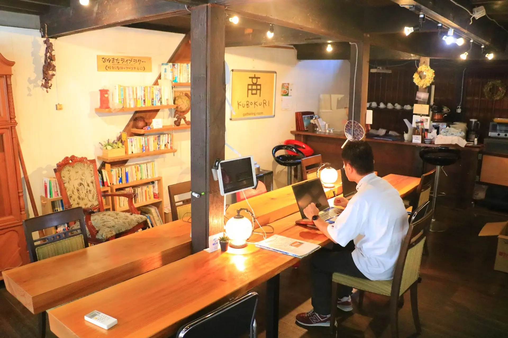 鳥羽湾の船旅を満喫したあとは、コワーキングスペースがある「KUBOKURI」でお仕事タイム。この施設はかつてクリーニング屋さんだった建物「久保クリーニング店」をリノベーションした建物で、KUBOKURIという名称はその名残からきています。