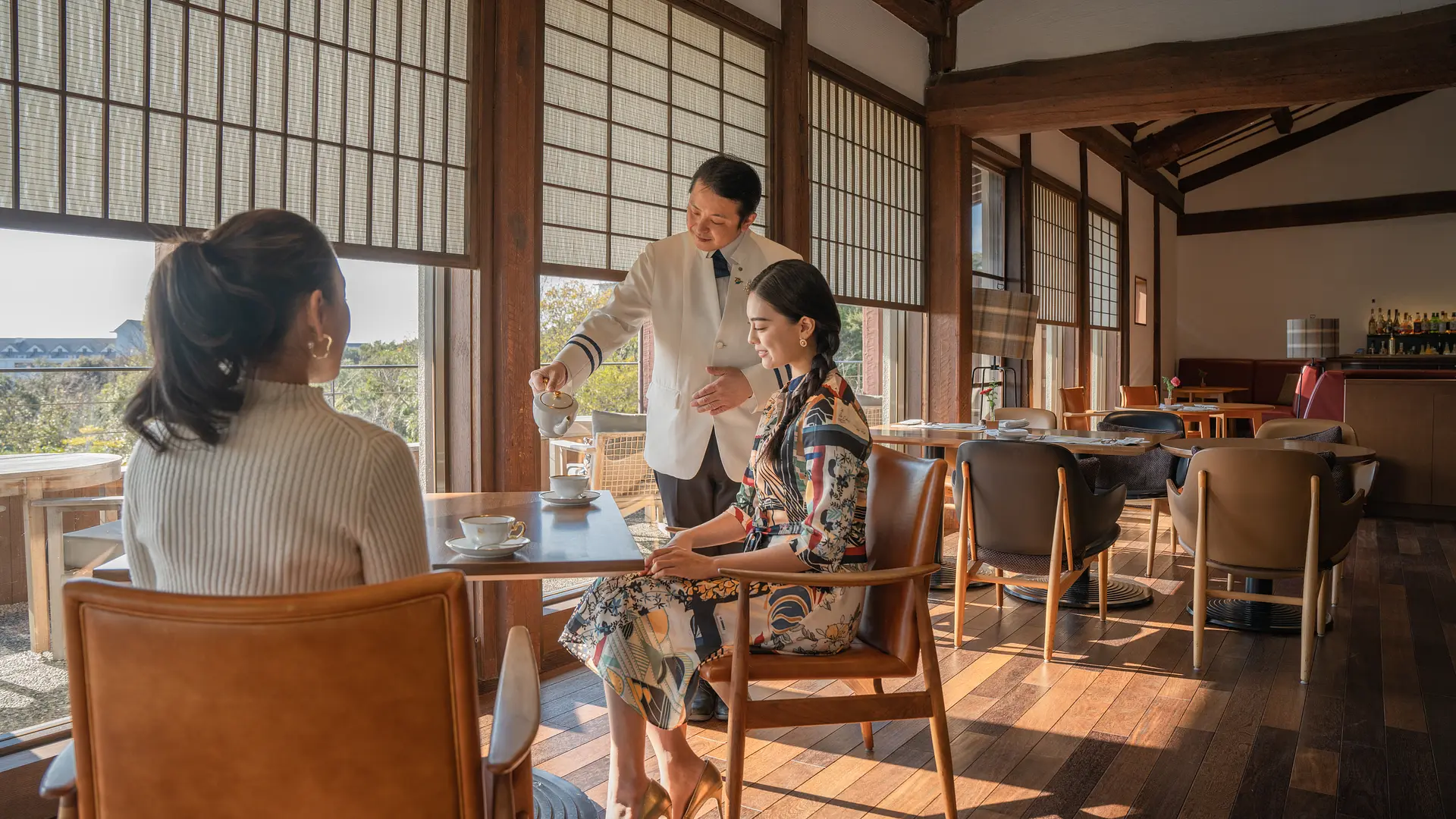 食後のティータイムは、「ザ クラブ」内にあるカフェ&ワインバー「リアン」へ。和洋折衷の美しい空間が広がっているリアンは、大きな梁や吹き抜けの天井など、開業当時の面影が残されており、志摩観光ホテルの歴史の深さを空間を通して楽しむことが出来ます。