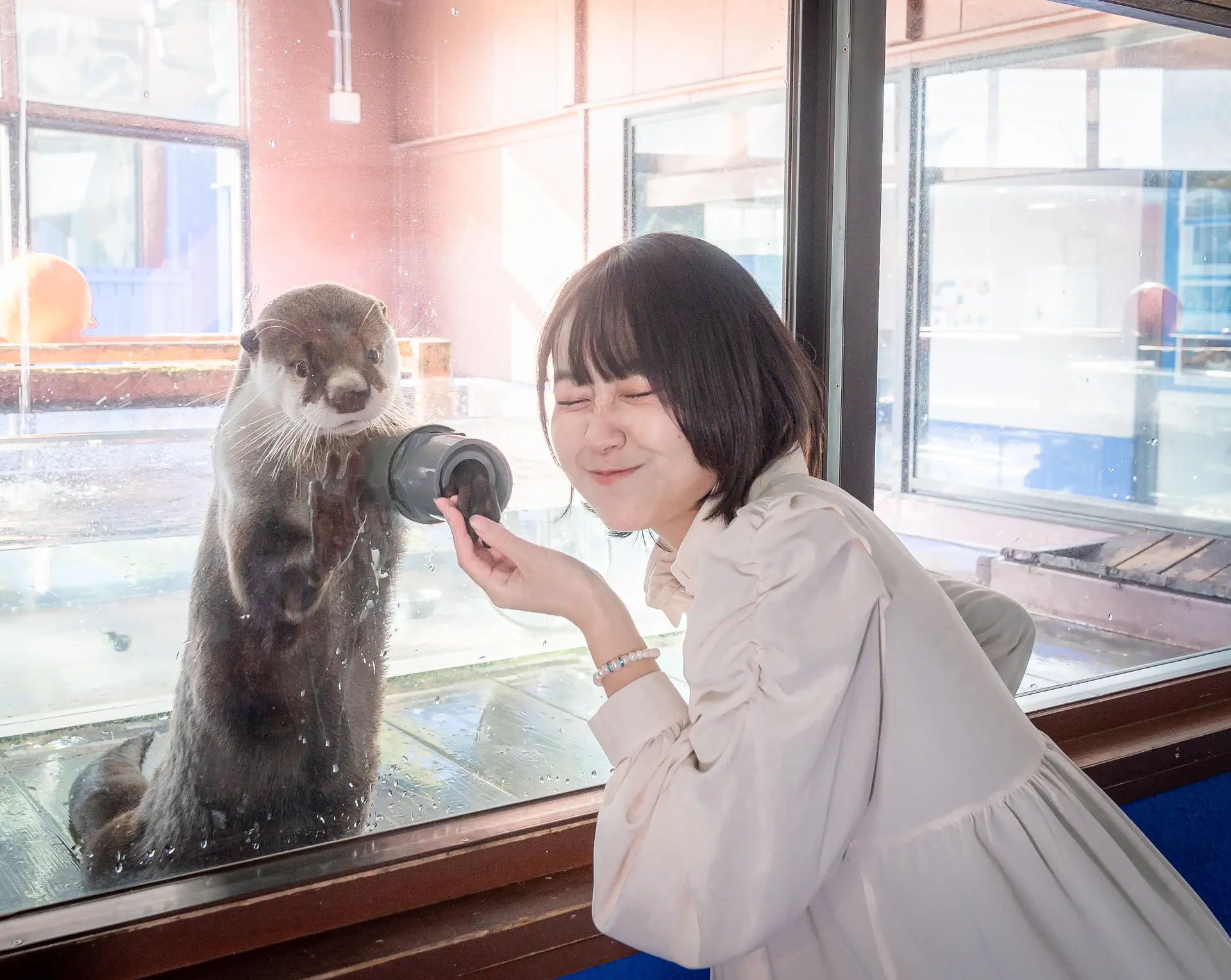 日本で唯一の握手イベントでは、カワウソ特有の習性を体験することができ、爪のないプニプニの手の感触がたまりません。
