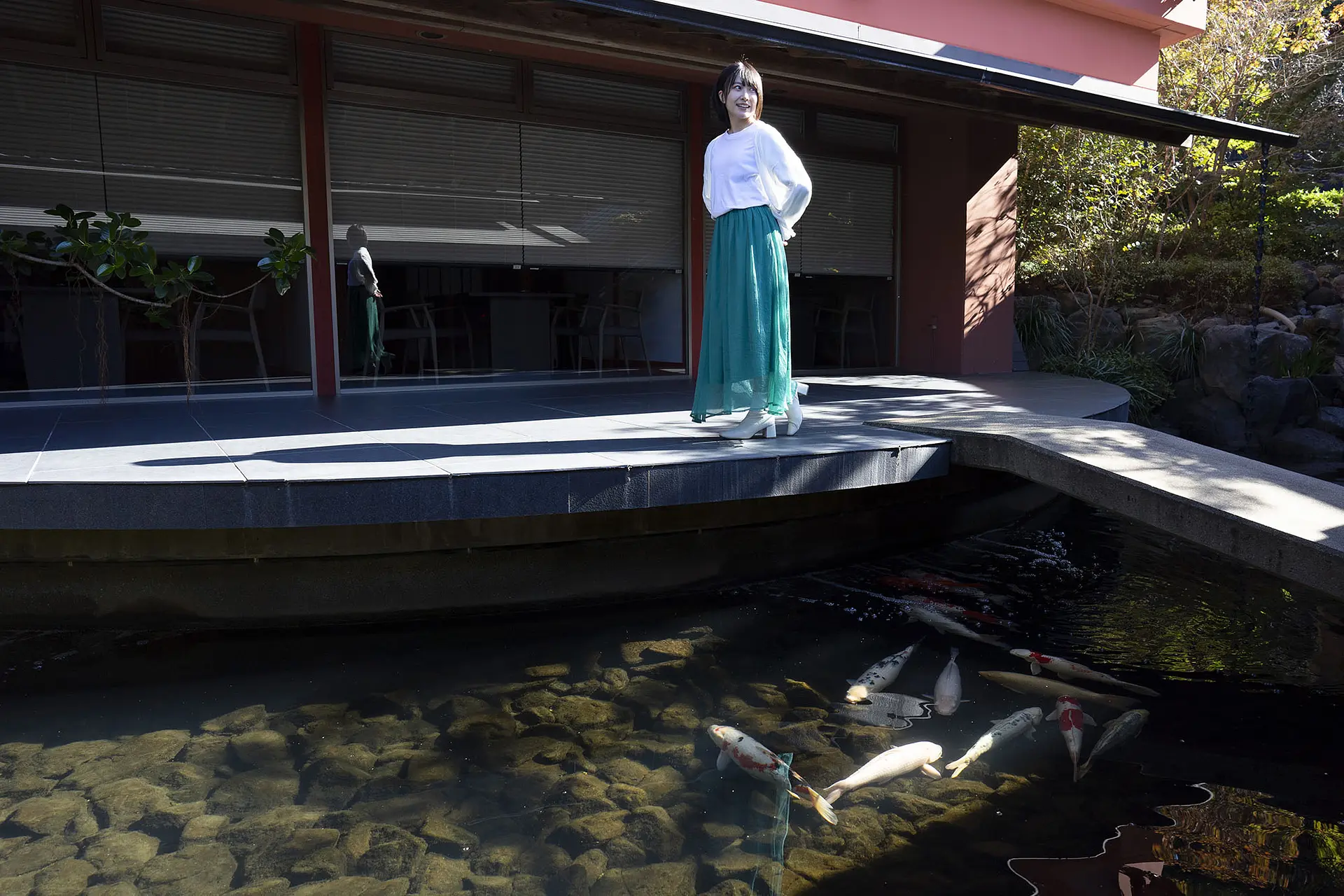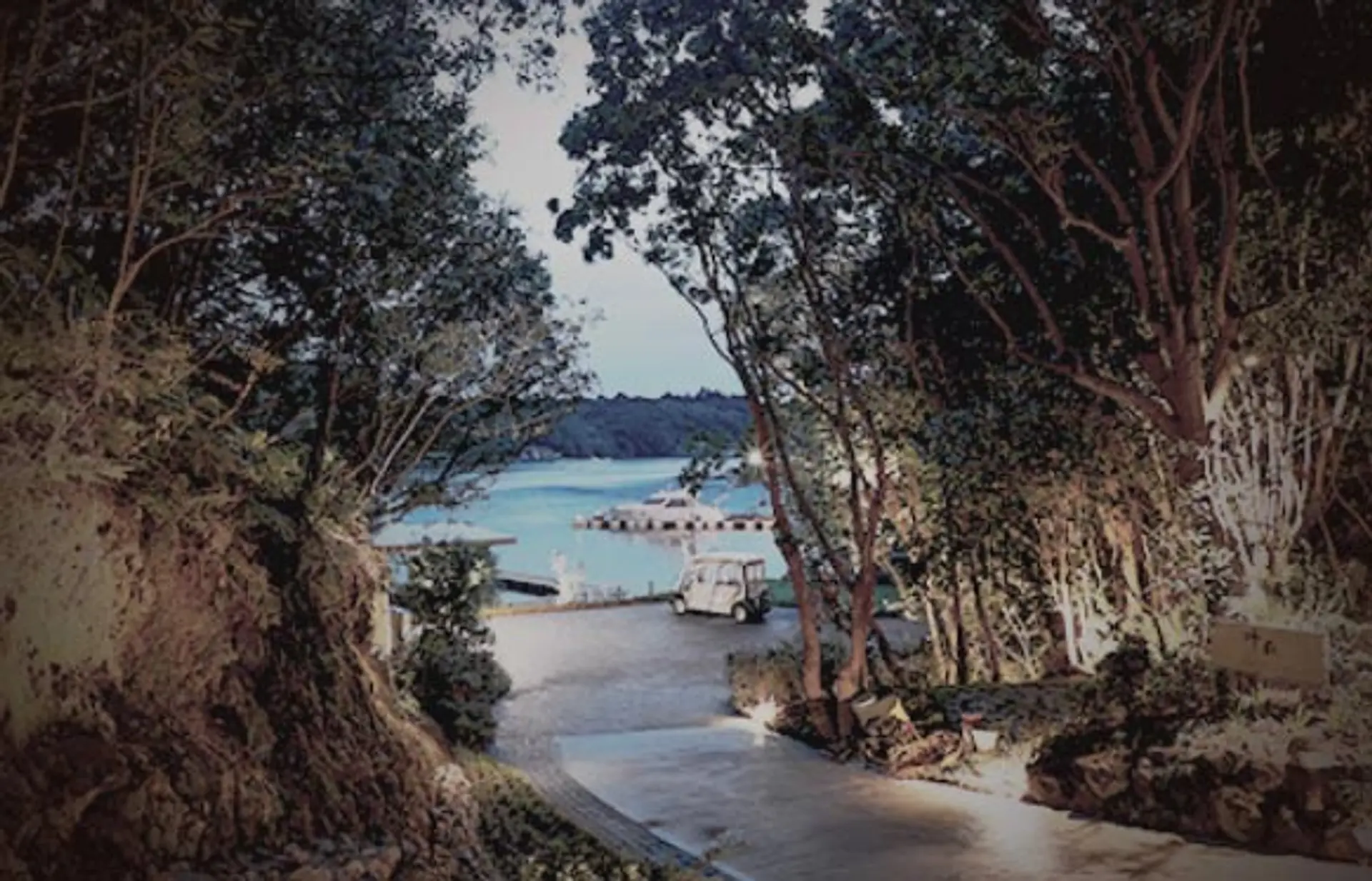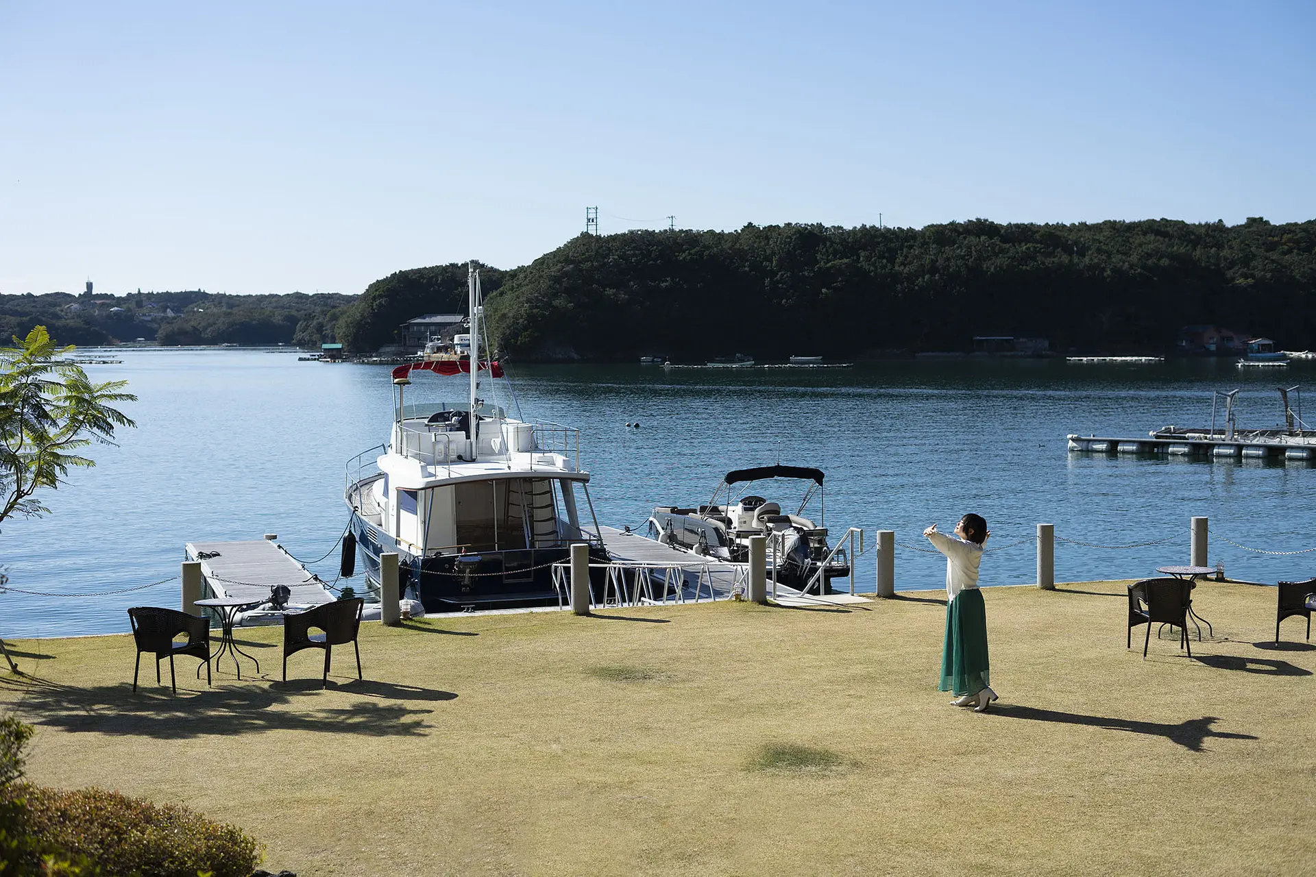 今回、桟橋へ向かう途中に立ち寄った「叶庭」は、穏やかな海風に爽やかな潮の香り、そしてせせらぎの音に包まれていて、まるで時間がゆっくりと流れているかのように感じる空間でした。