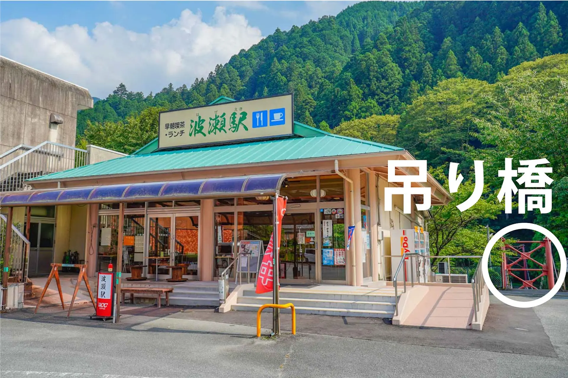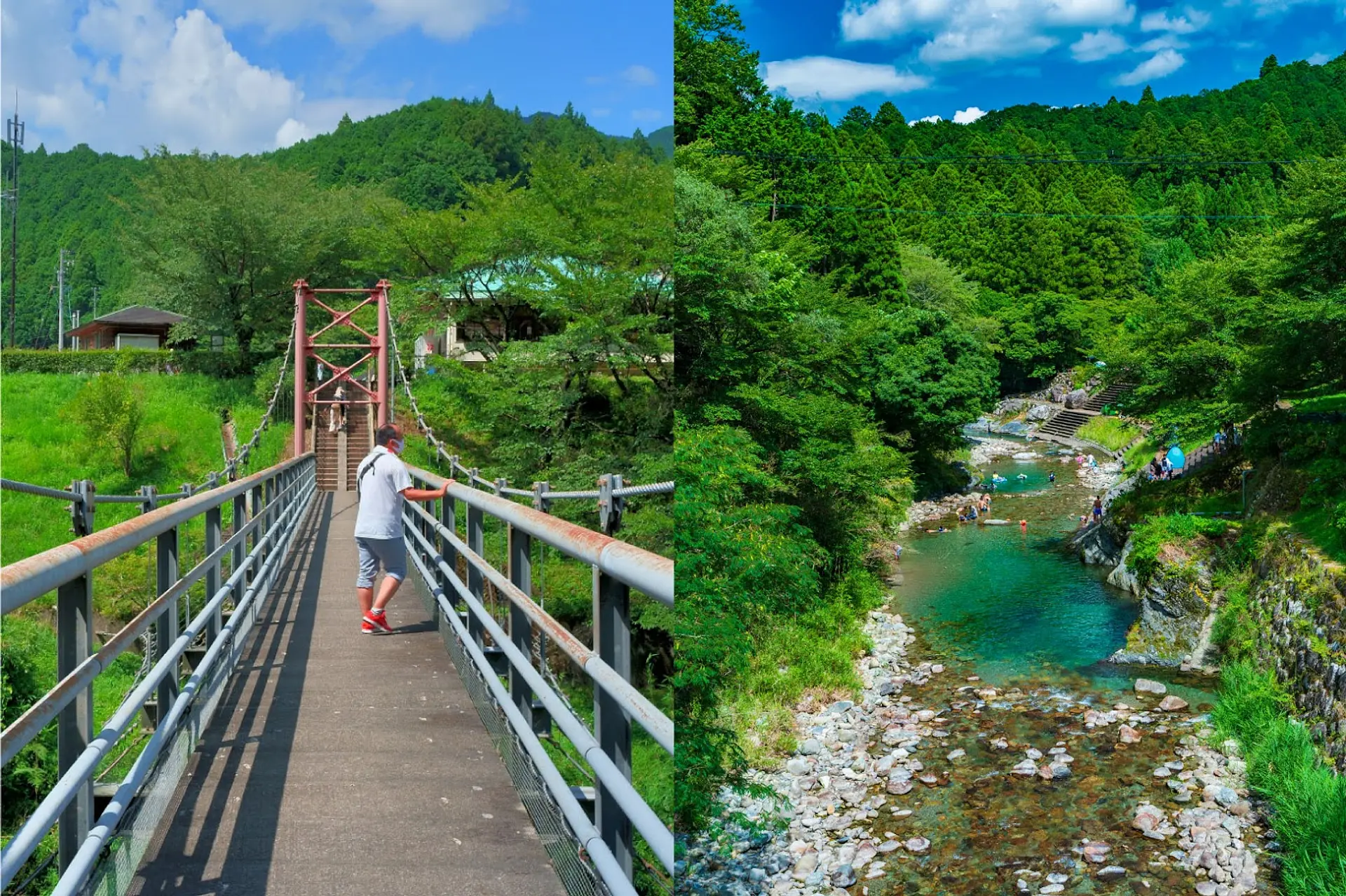 川へのアクセス方法は簡単!波瀬駅の後ろにある吊り橋を渡ってすぐのところに川があります。