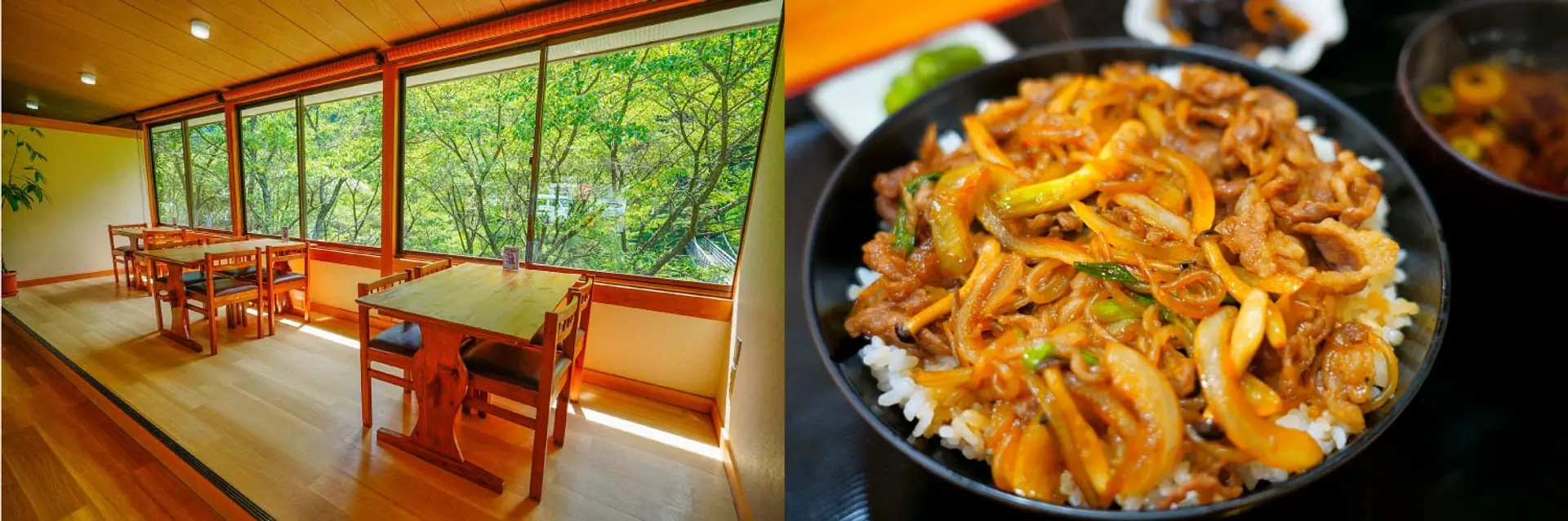 温泉で汗を流したあとは、駅舎内にある「レストランいいたか」でお食事はいかが?