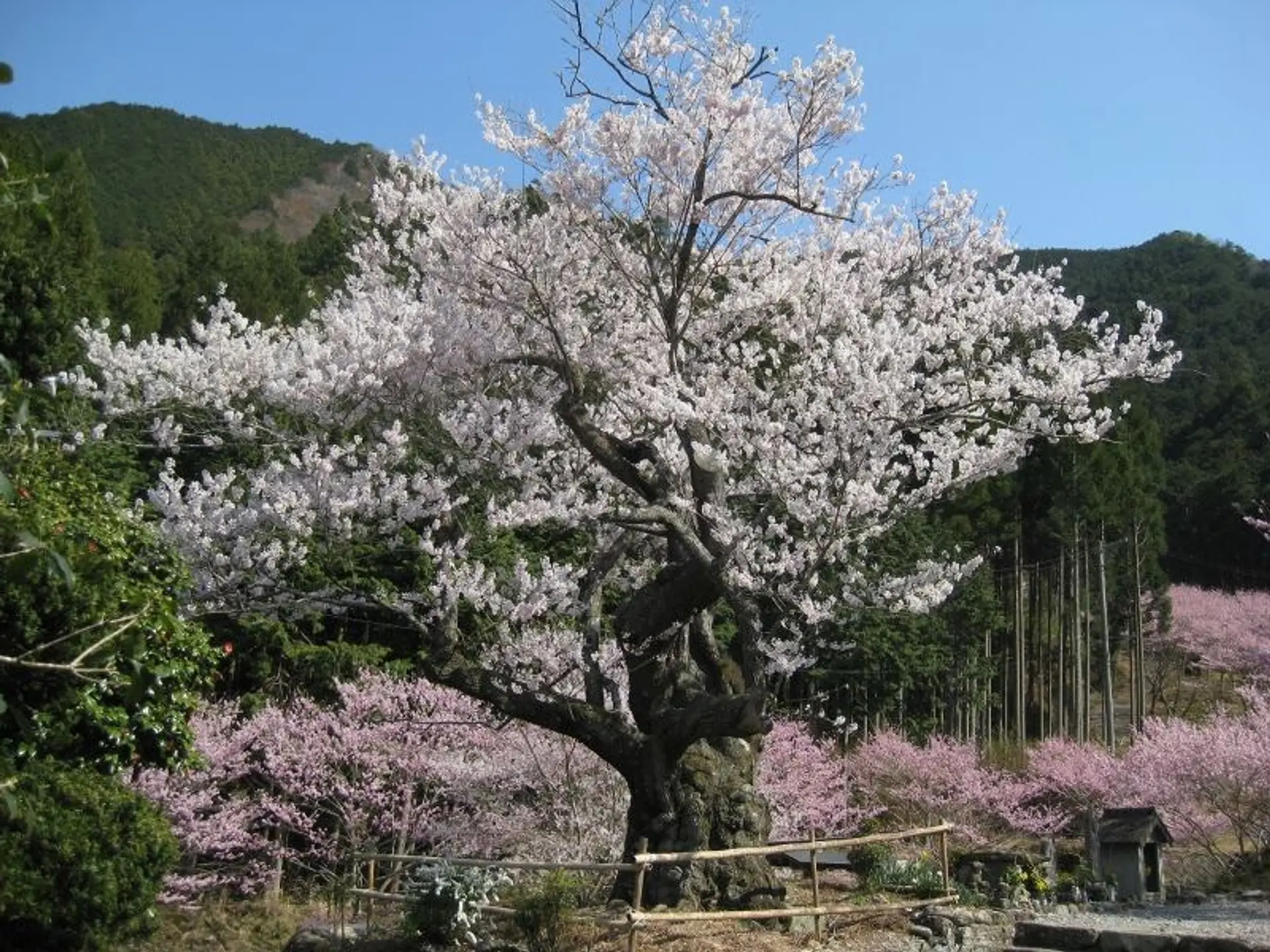 3月下旬から4月上旬にかけて開花し、周囲には50本程度の若いエドヒガン桜の木々も咲き乱れます。