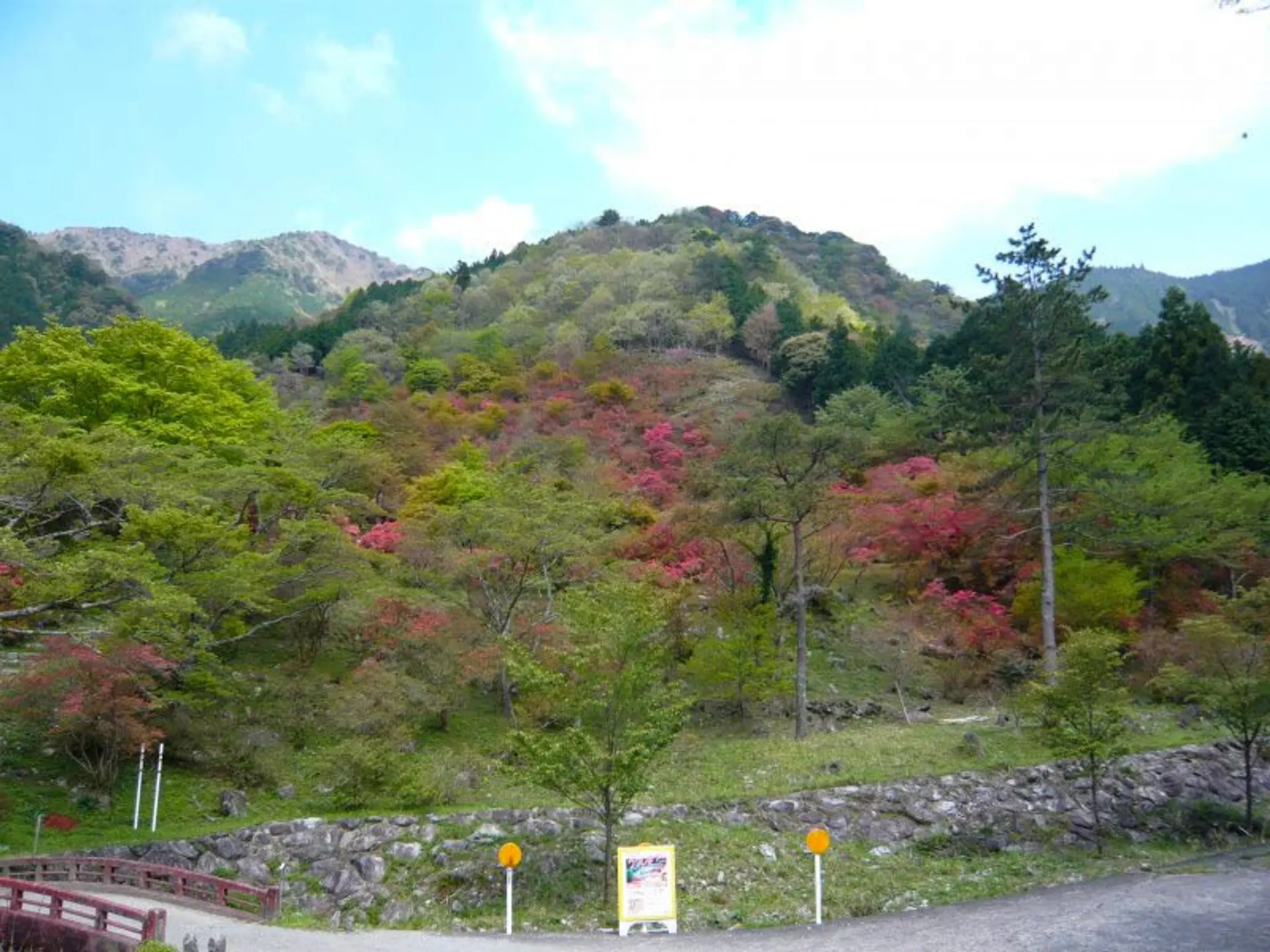 松阪市飯高町にある寺院「荒滝不動尊(あらたきふどうそん)」の周辺には約3千株のツツジが咲き、見頃を迎えると山の斜面が真っ赤に染まります。
