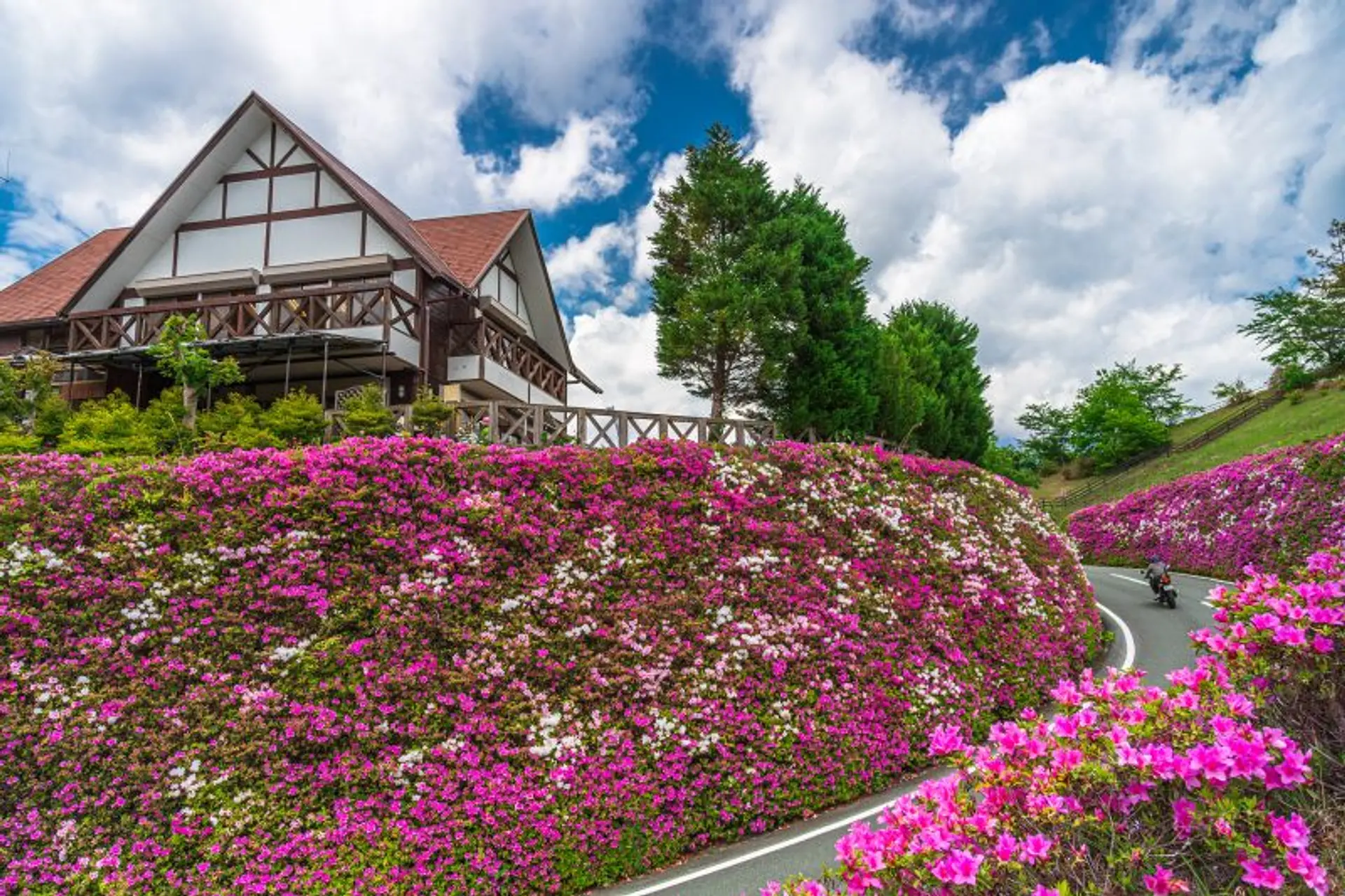 桜スポットで紹介した「道の駅 茶倉駅」はツツジの名所でもあり、ゴールデンウィークが近づくと駅舎周辺を覆うように紅白のツツジが咲きます。