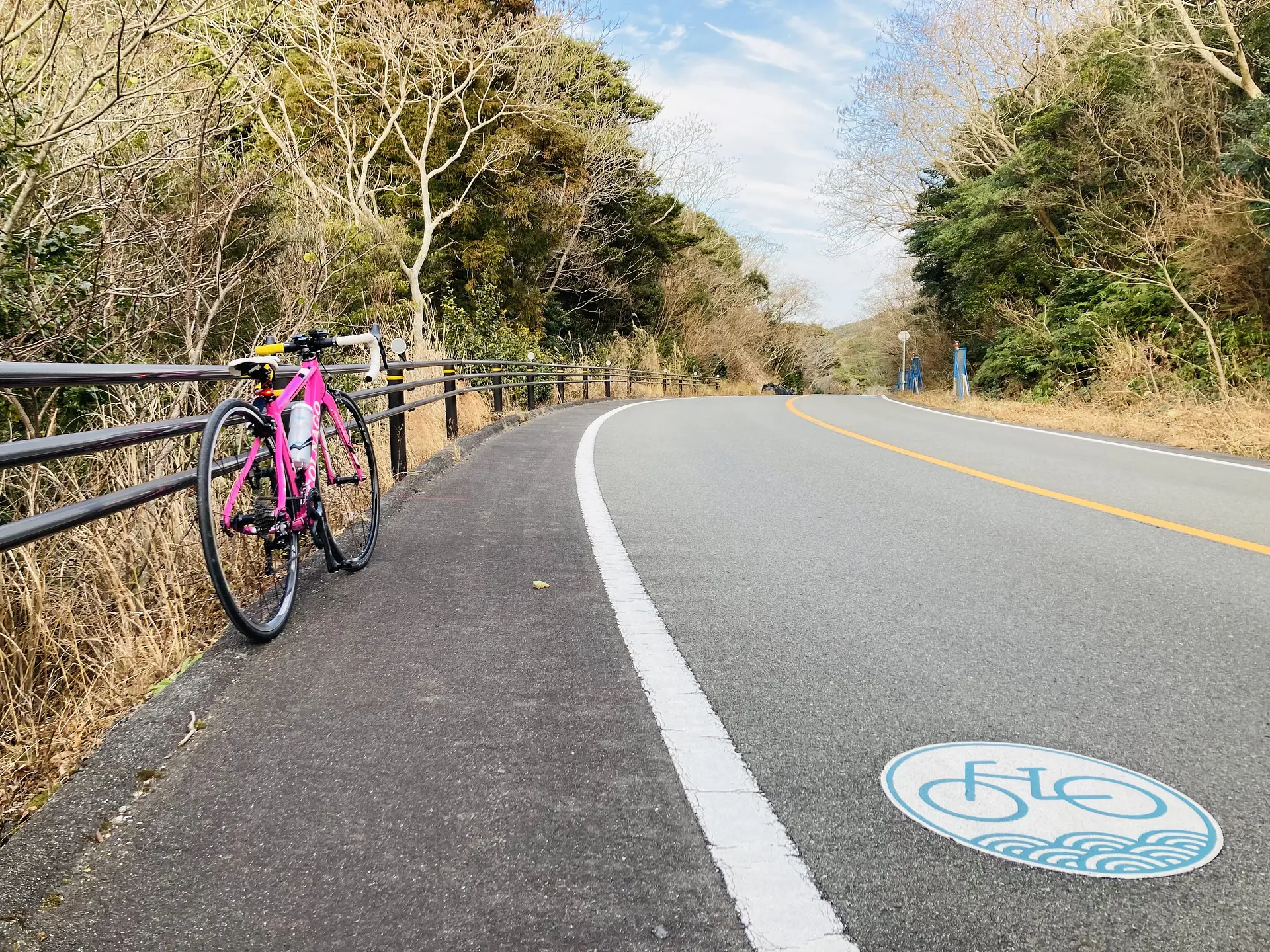 自動車やバイクでのドライブにはもちろん、ロードバイクにも人気のコースになり、私たち以外にもロードバイクで走っている方を見かけました。