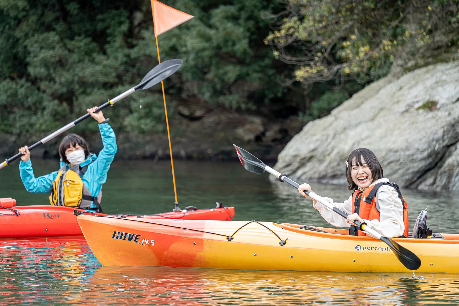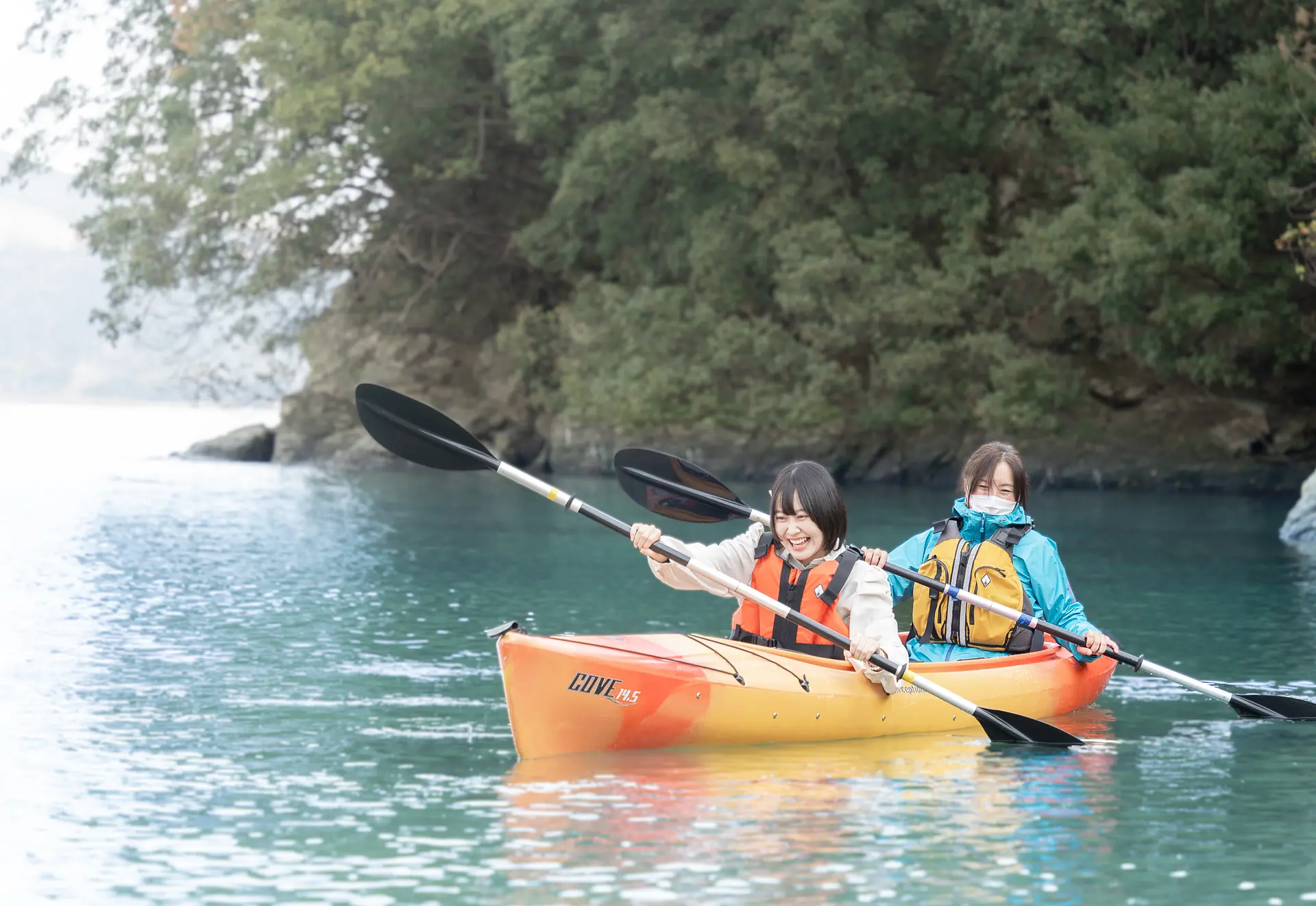 体力に自信がなくても、2人乗りのカヤックなら楽々です!