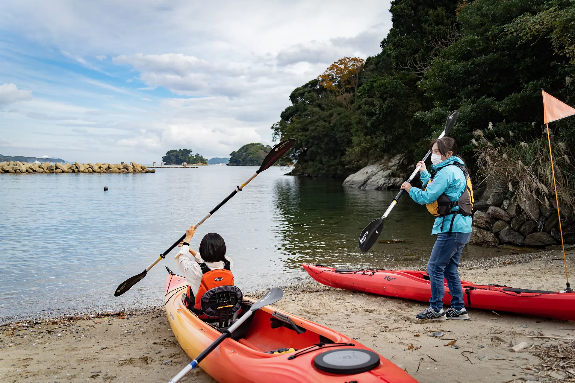 今回のカヤック体験では、経験豊富なガイドさんにも同乗していただきました。