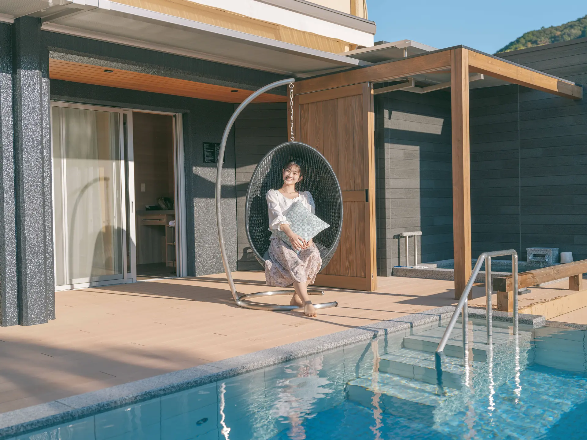 各部屋にはウッドデッキが新設されていて、露天風呂やプール、ジャグジーなどをプライベートに満喫できるのが一番の特徴です♪
