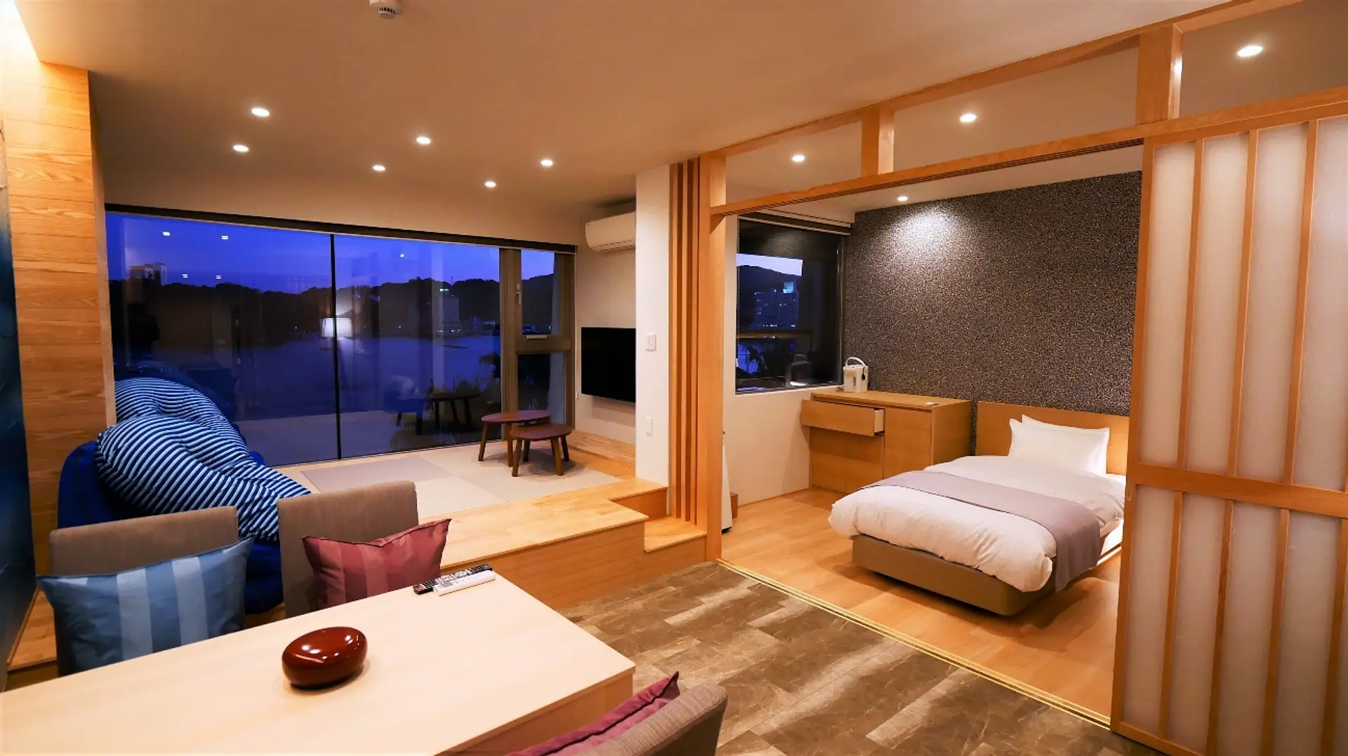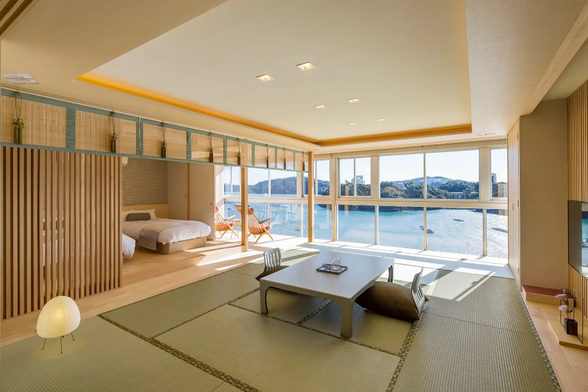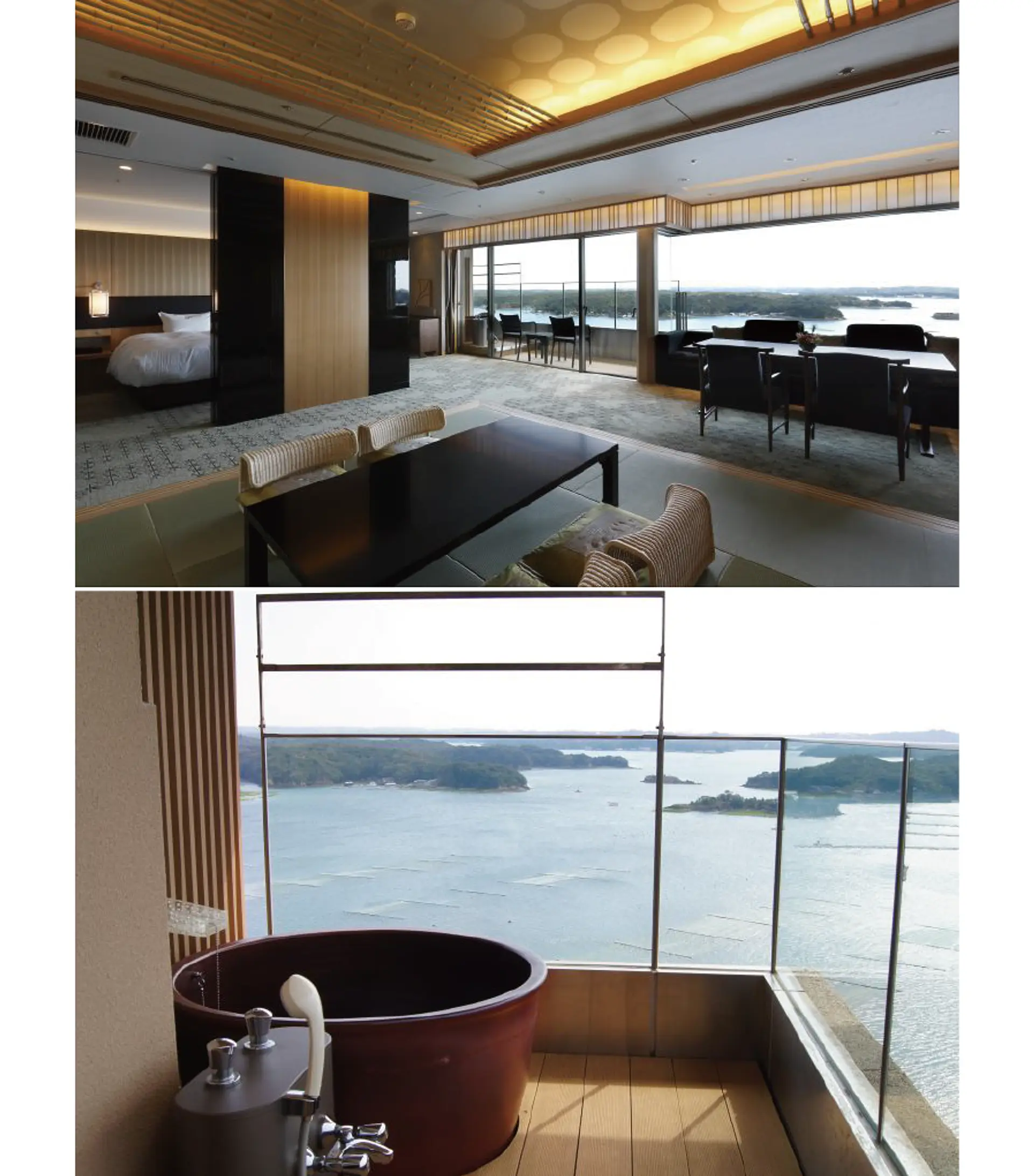 最上階にある客室「桜フロア」は、「桜」をモチーフにした客室で品格のあるデザインと、オーシャンビューがなんとも風流。こんな素敵なお部屋で朝を迎えたら気持ちがいいですね!