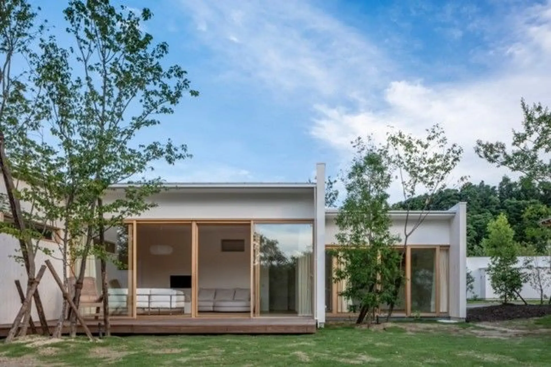 受付からヴィラまでは無人で運転してくれる「自動運転モビリティ」による送迎サービスがとても便利で楽しいですよ。そしてアート作品に見立てられた建物や庭を眺めながら優雅にヴィラに到着!!