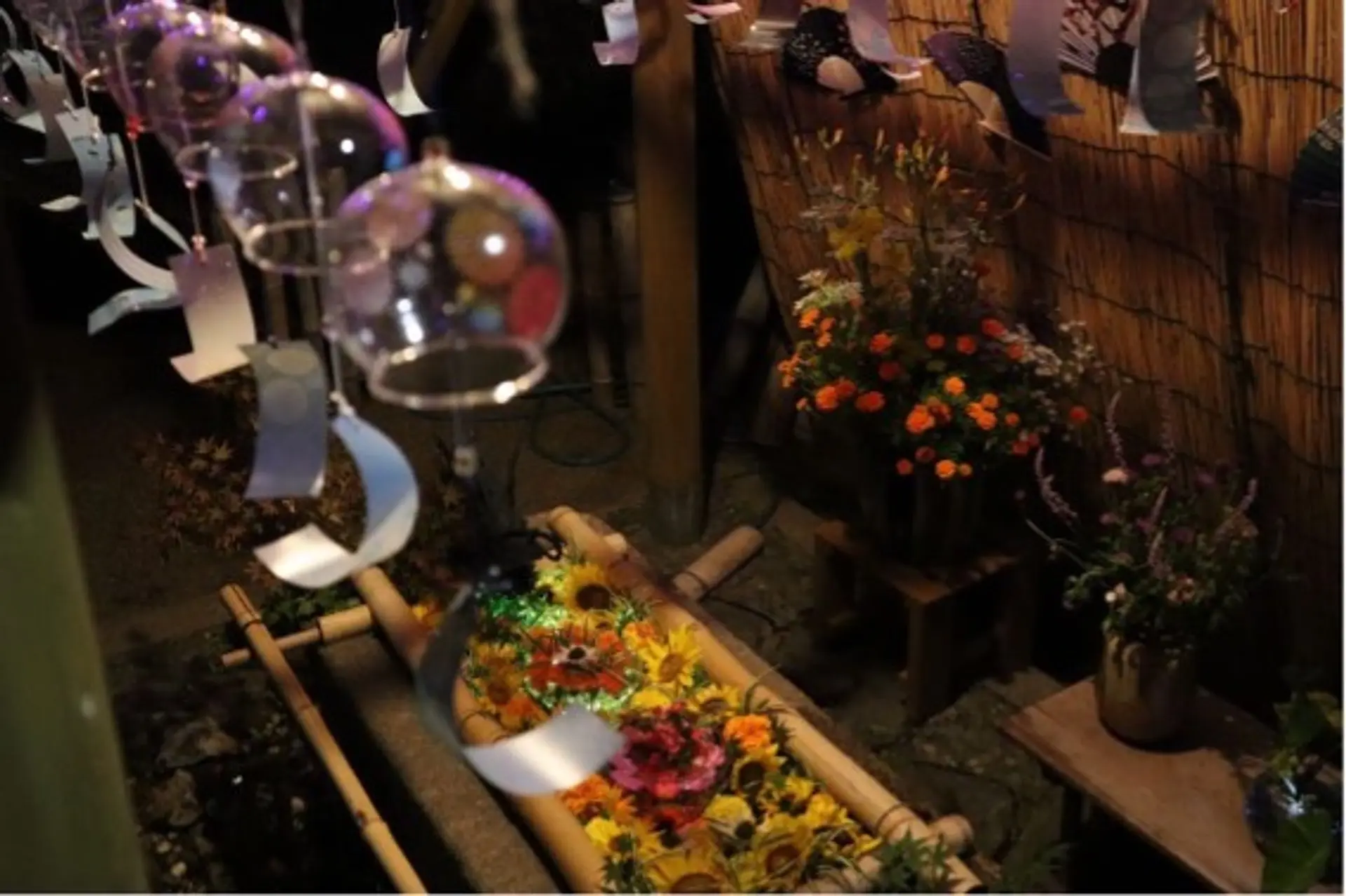 花手水舎・境内を18:00ごろ(日没後)〜20:00でライトアップ!